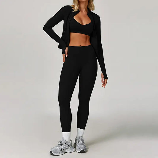 Design Details: - Breathable y-shape back straps sports bra & long sleeve full zipper fitness...
