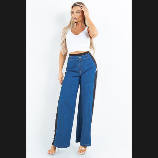 Medium wash denim combo with windbreaker fabric with line detail Inseam 32” Contents: 92% Cotton,...