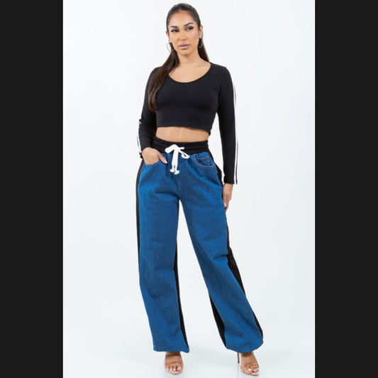 Denim cargo jeans Multi pockets Stretchy denim Wide legs Contents: 75% Cotton, 23% Polyester, 2%...
