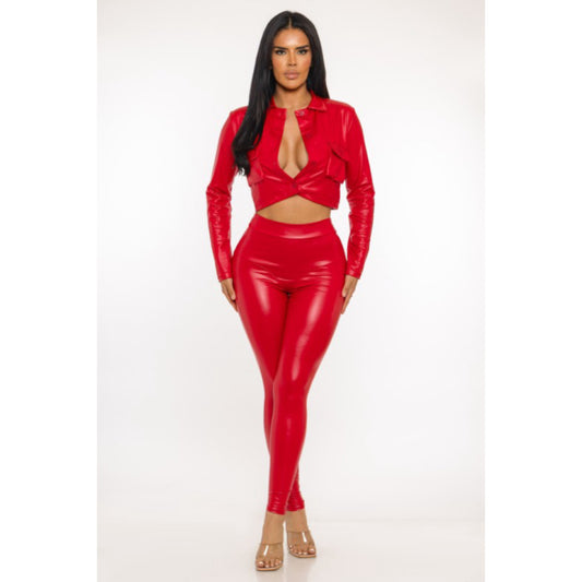 Faux leather cropped top and pants