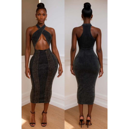 Mineral wash Front cross halter Front cutout Bodycon Stretch Midi length Contents: 96% Cotton, 4%...