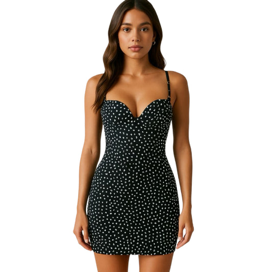 Embellished bandage dress with shoulder straps Sweetheart neckline Rhinestones Adjustable shoulder straps Mini length Zipper...