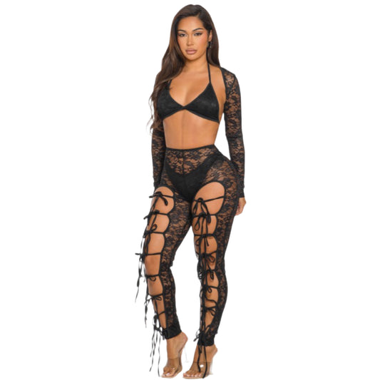 3 pc set (Cardigan, Crop Top, Legging) Jersey fabric Elastic waist band Stretch Content: 95%...