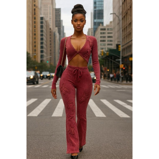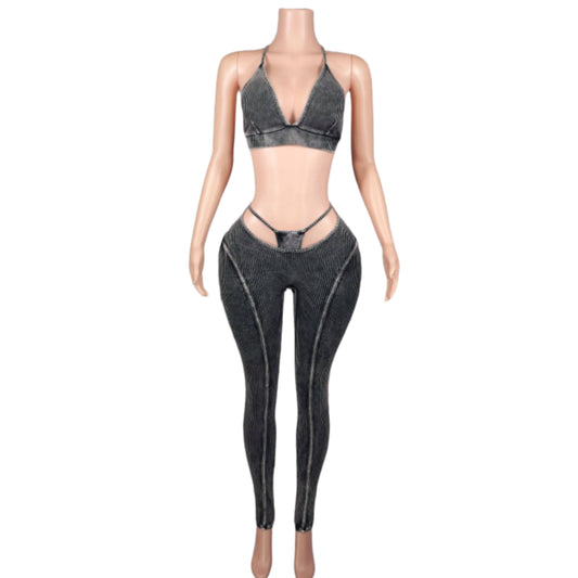 Mineral wash Set comes with top and bottom Cross detail Cropped long sleeve Elastic waist...