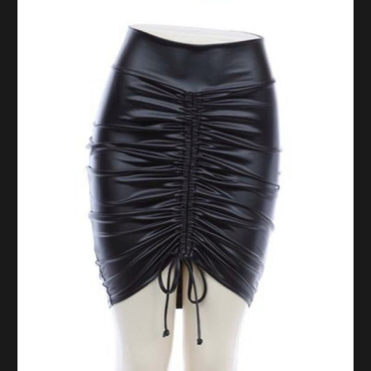 High waist drawstring leather skirt