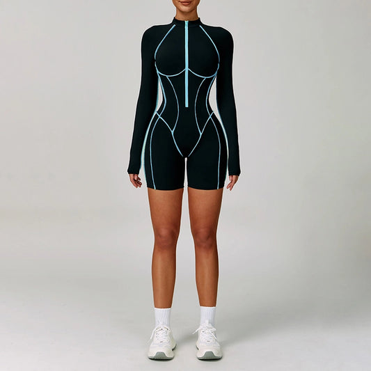 Design Details: - Breathable snug fit backless long sleeve yoga shorts jumpsuit design Unique Design...