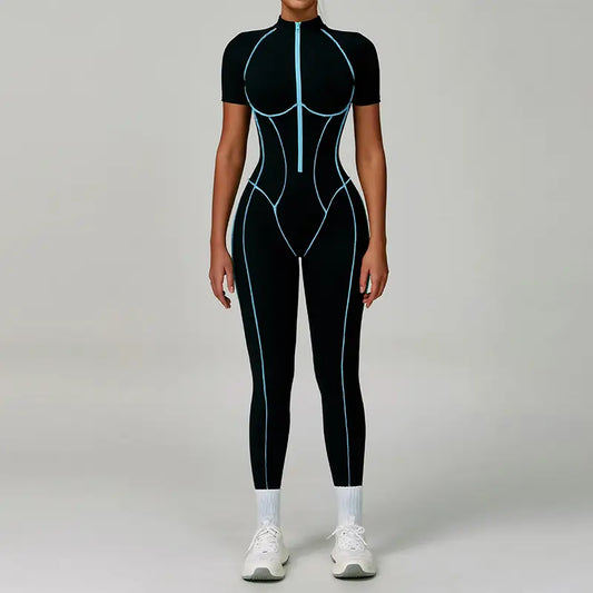 Design Details: - Breathable snug fit backless short sleeve yoga leggings jumpsuit design Unique Design...