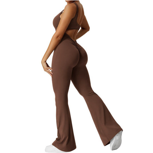 Flare bottoms scrunch butt jumpsuit Deep v cut out back design Scrunch butt design make...