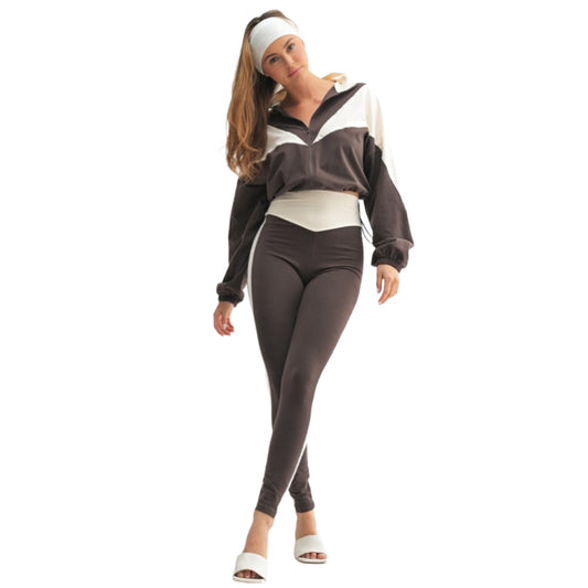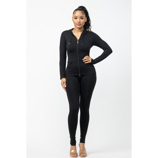 Seamless zip up hoodie drawstring jacket with side pockets and leggings set