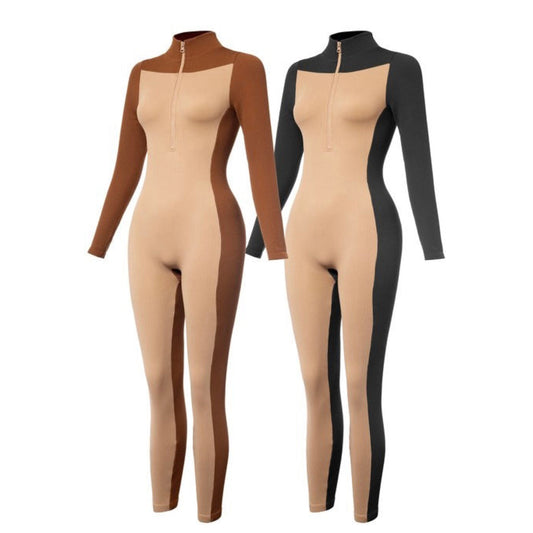 Design Details: - Ultra-soft high resilience snug fit stand collar half zipper short sleeved nude...