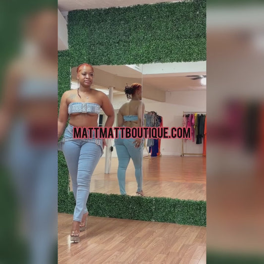 Techno crepe animal print tube top and leggings with pin tuck set Contents: 92% Polyester,...