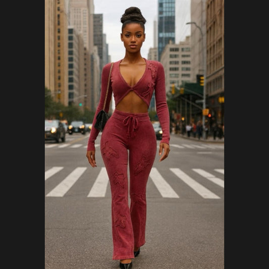 Mineral wash Set comes with top and bottom Cross detail Cropped long sleeve Elastic waist...