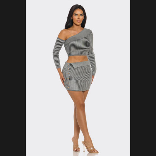 One shoulder knit crop top & fitted skirt set