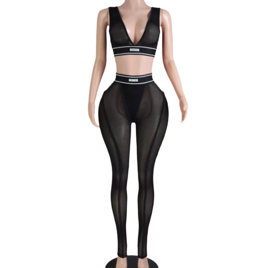 Sleeveless mesh bodysuit with matching leggings set