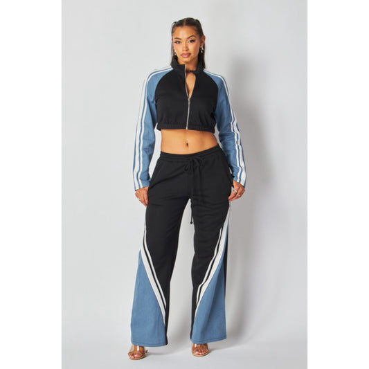 Wide pants set with featuring side pockets, color block detailing and a comfy fit Awesome...