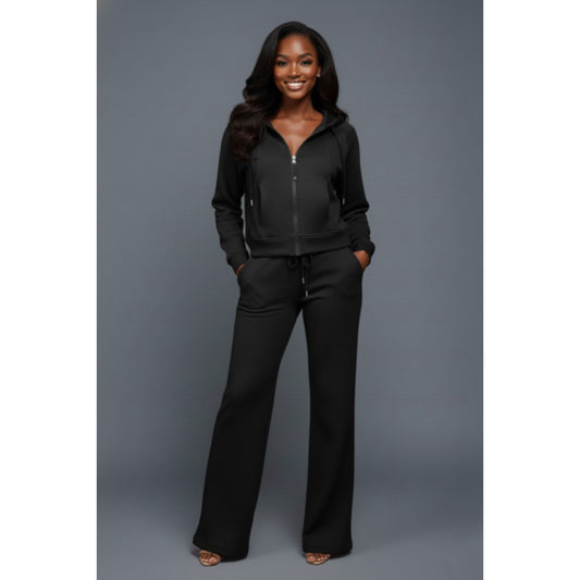 Zip up front cozy straight leg lounge set