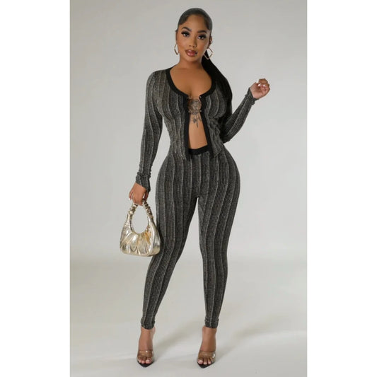 Shiny top with v cut waist pants set Contents: 95% Polyester, 5% Spandex Made in...