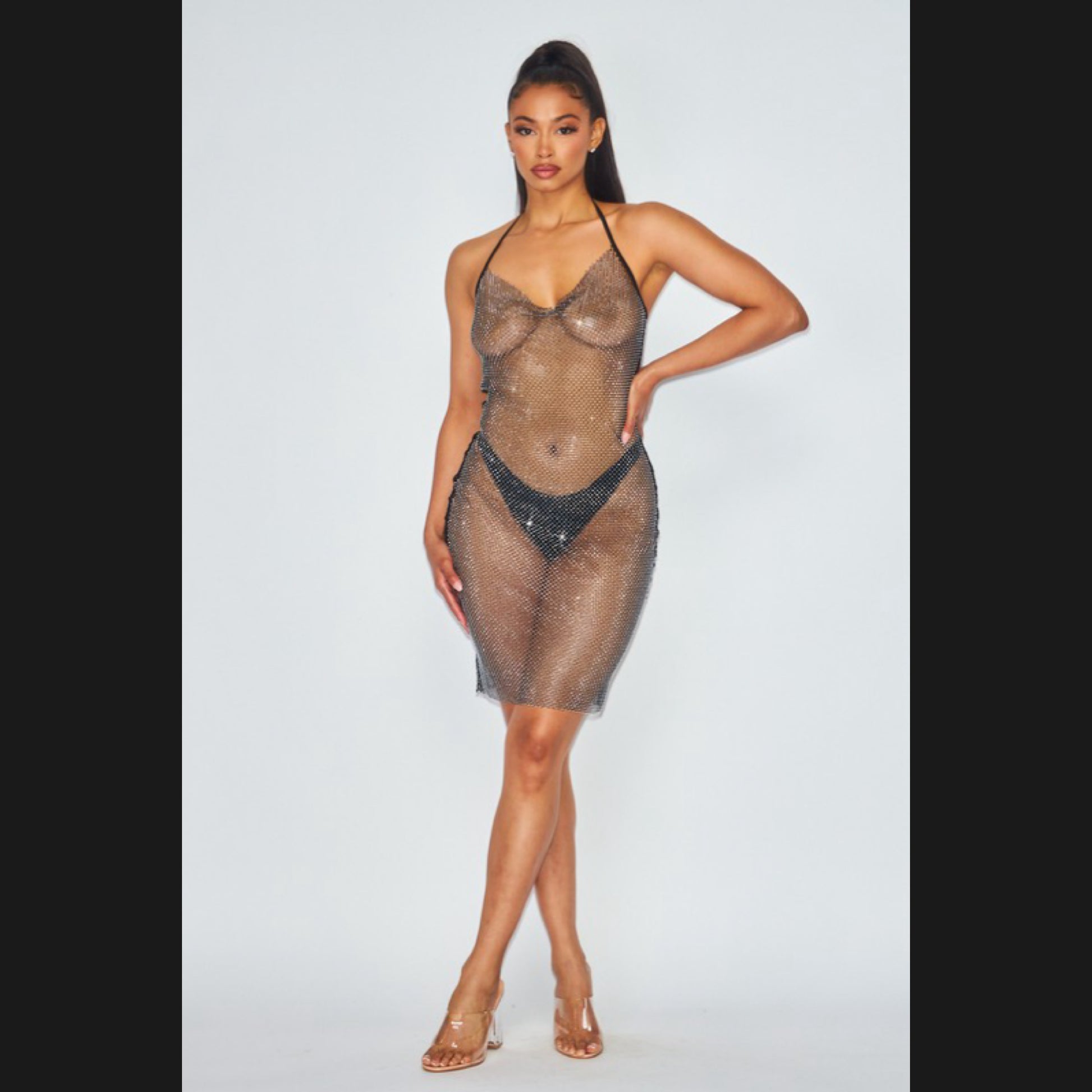Sparkly rhinestone cover up mini dress