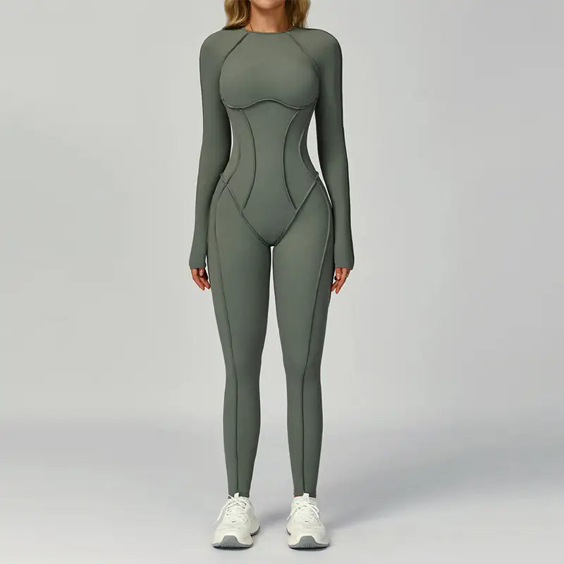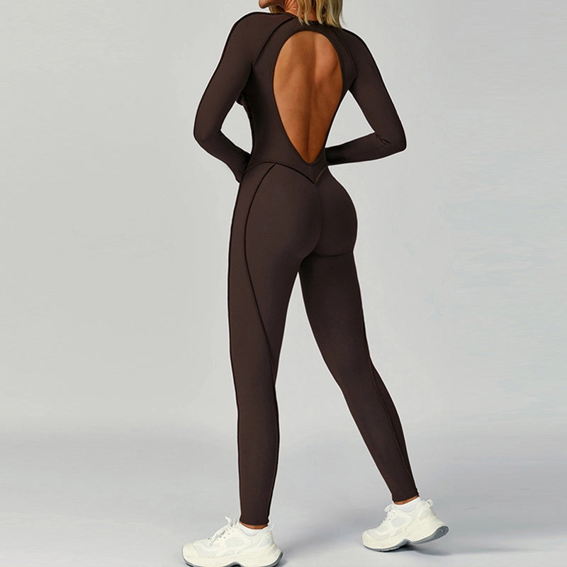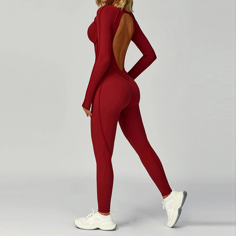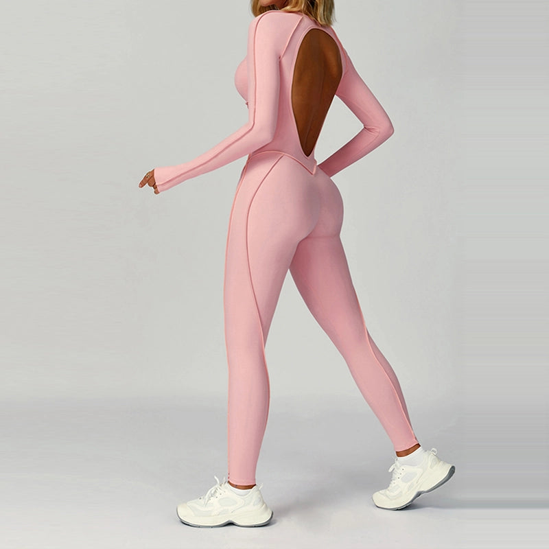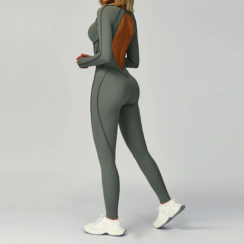 - Breathable snug fit backless long sleeve yoga leggings jumpsuit design
