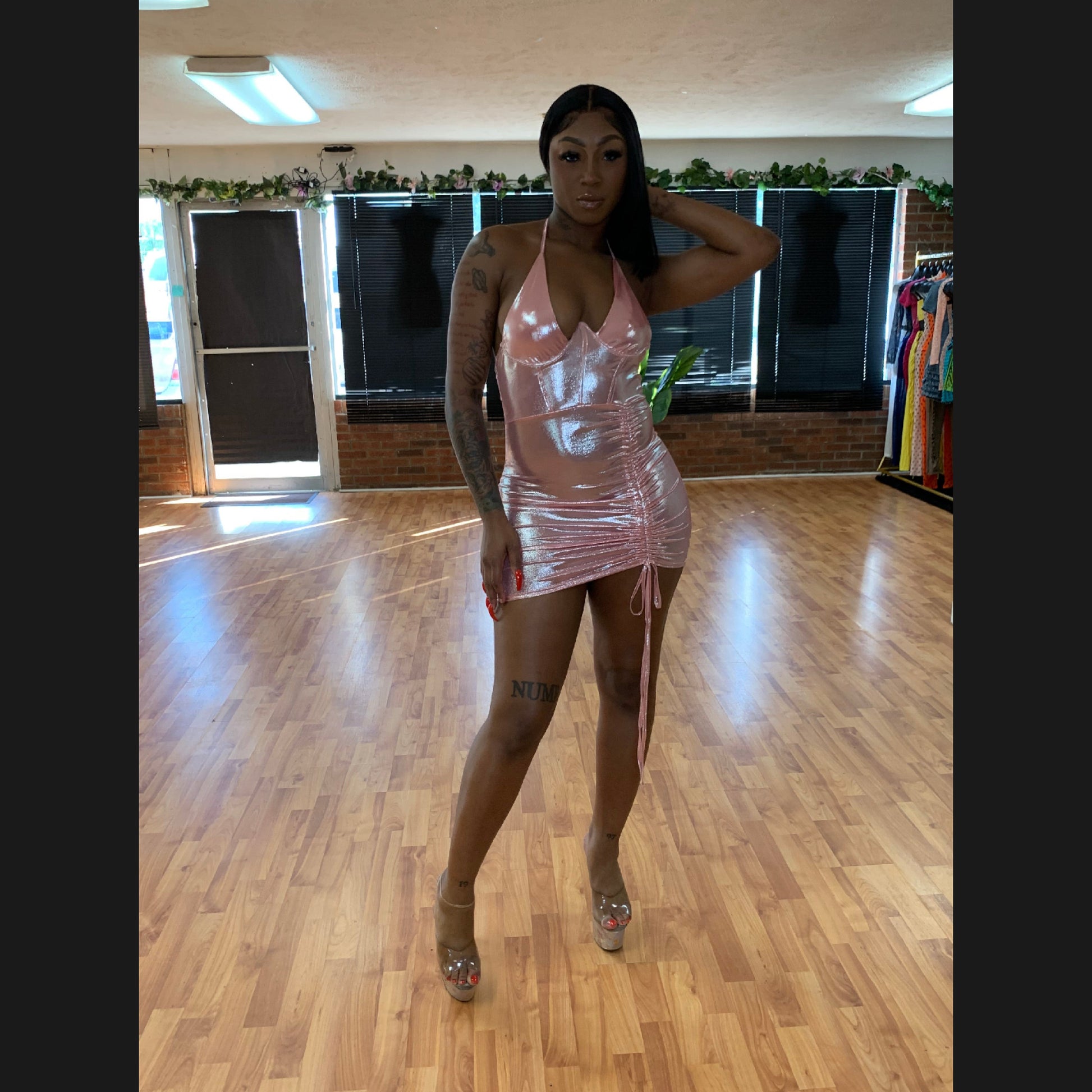 Metallic v neck mini dress