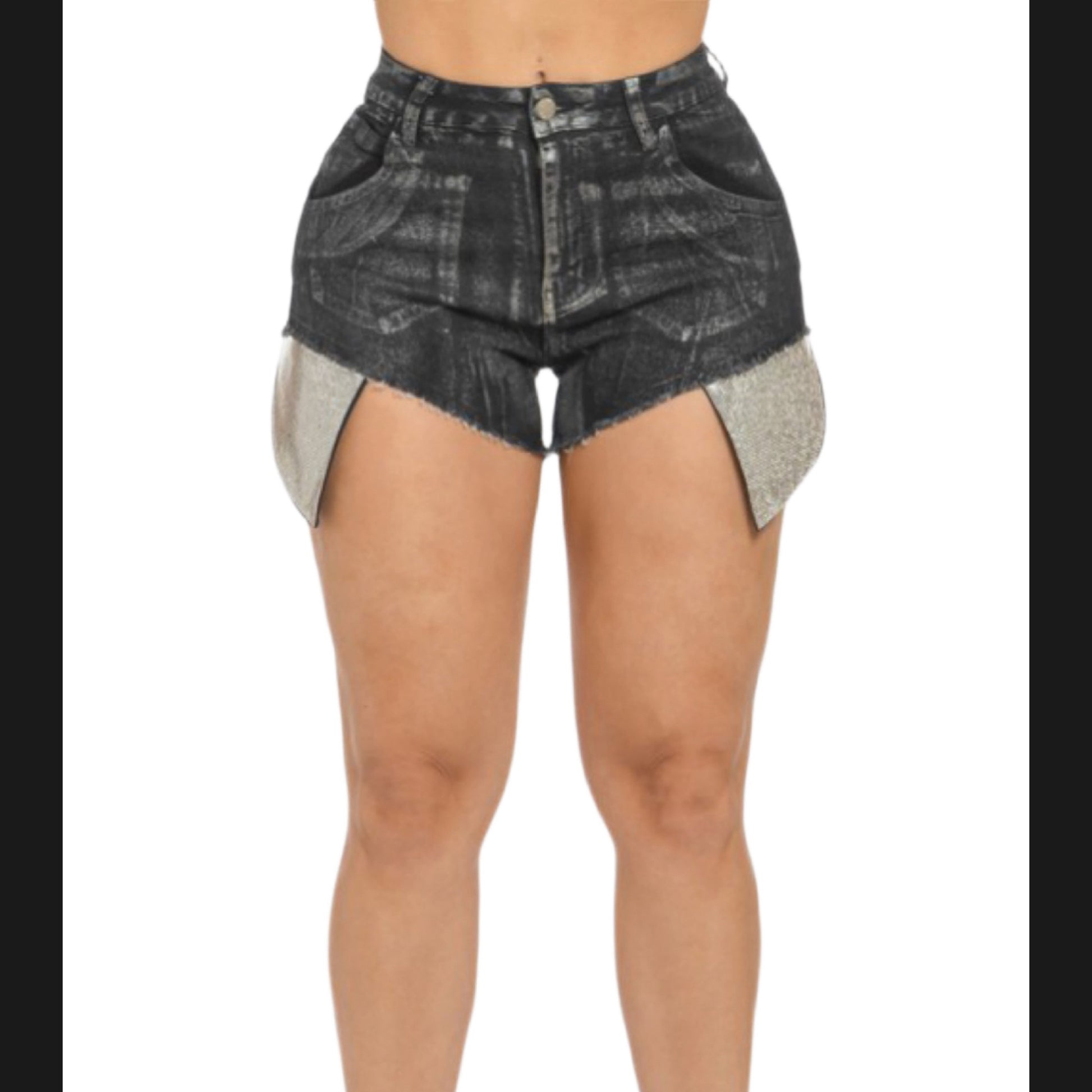 Sexy shorts with foil and rhinestone all over