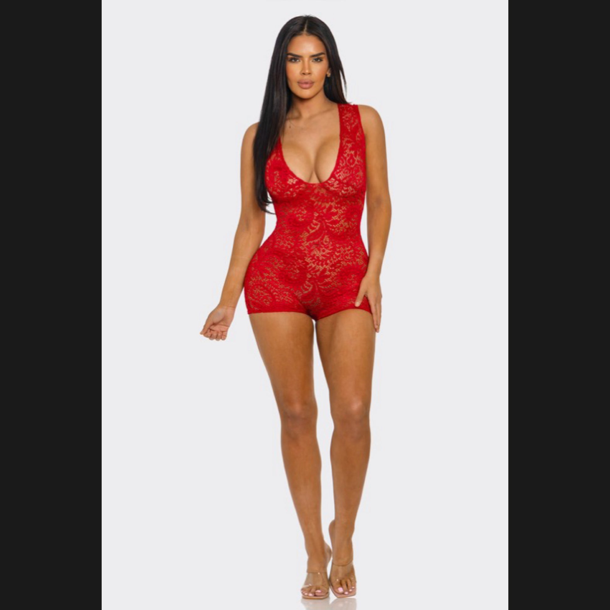 See through lace romper