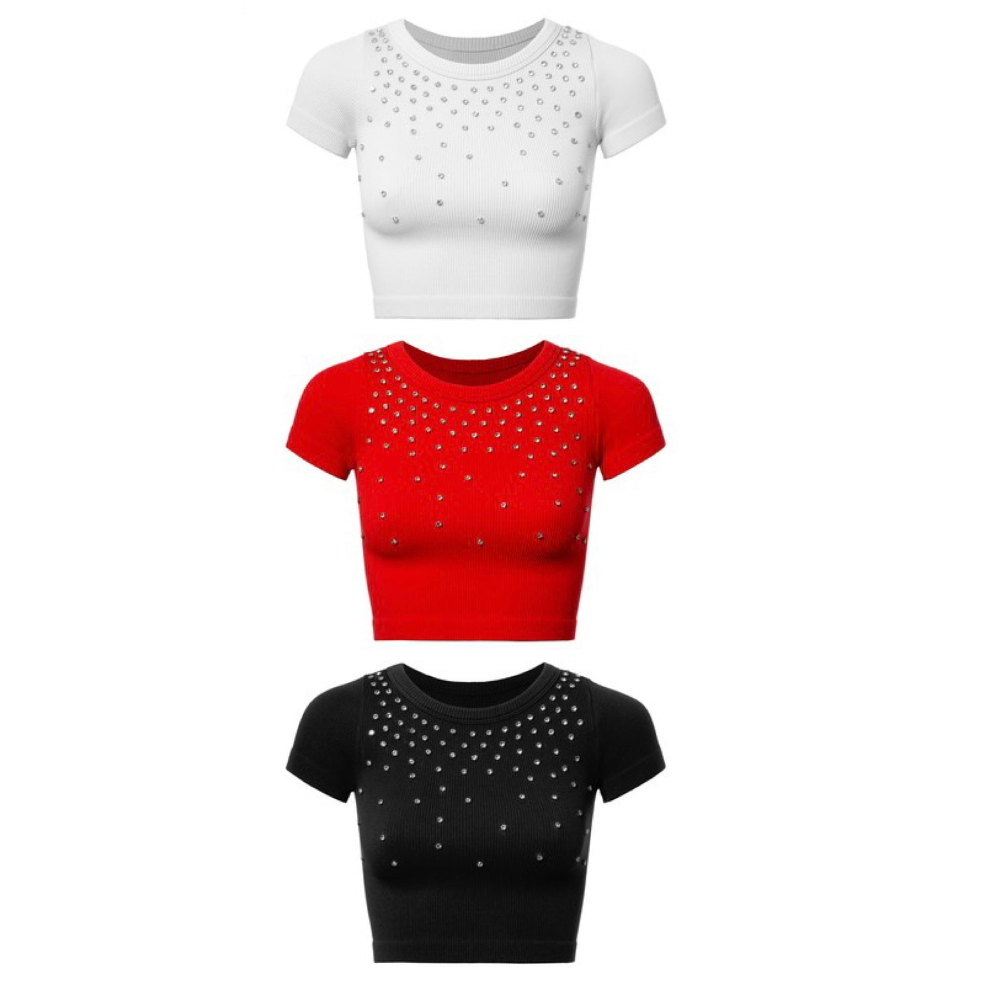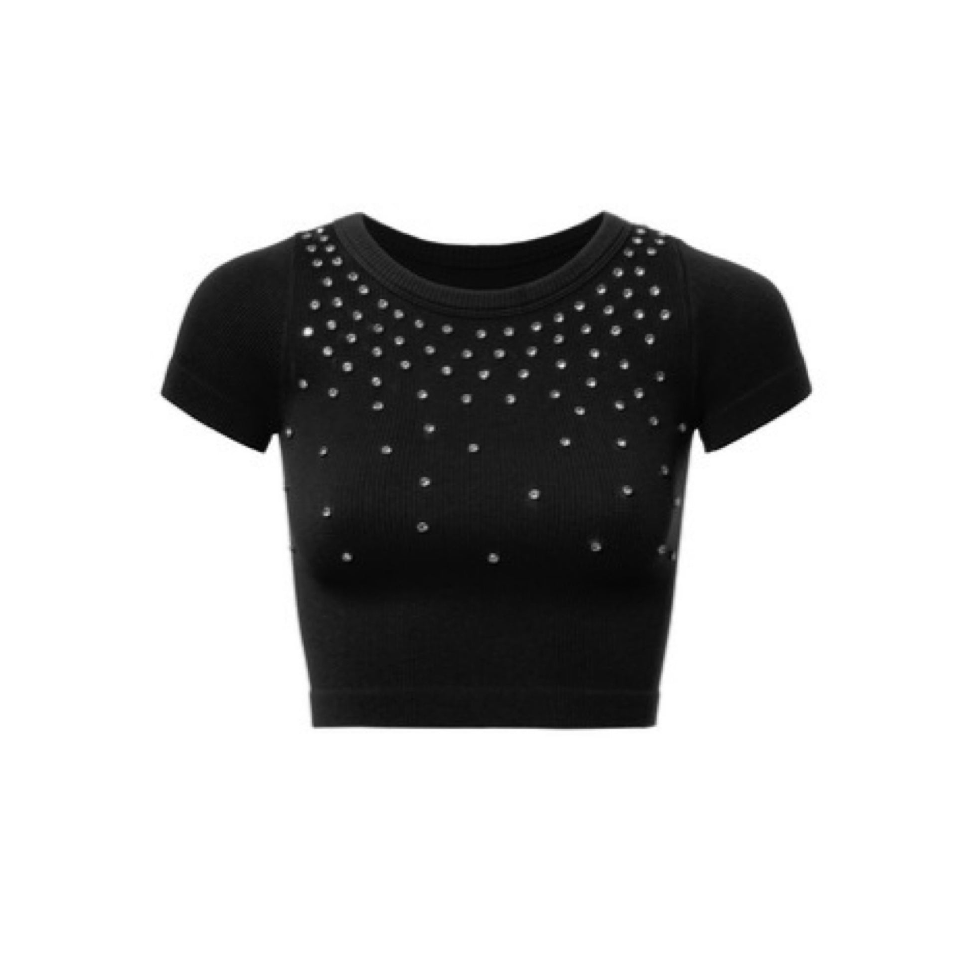 Rhinestone short sleeve rib tee