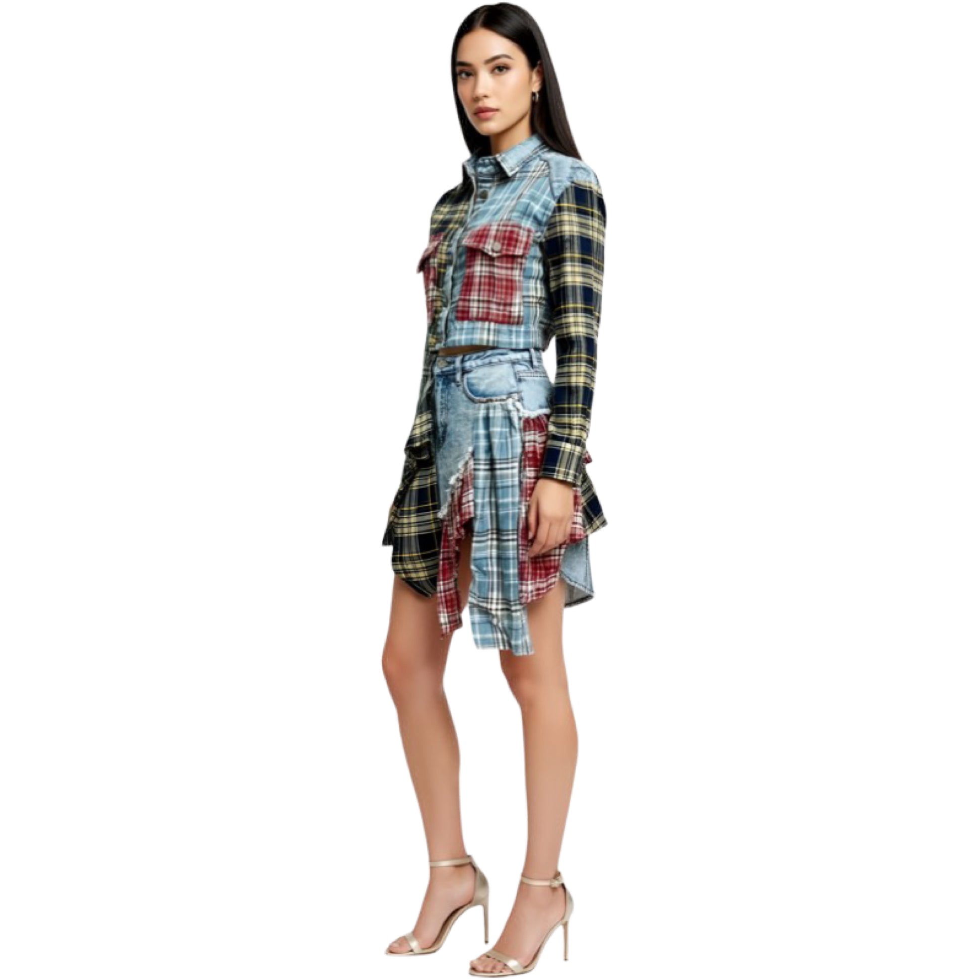Mixed plaid and denim patchwork design