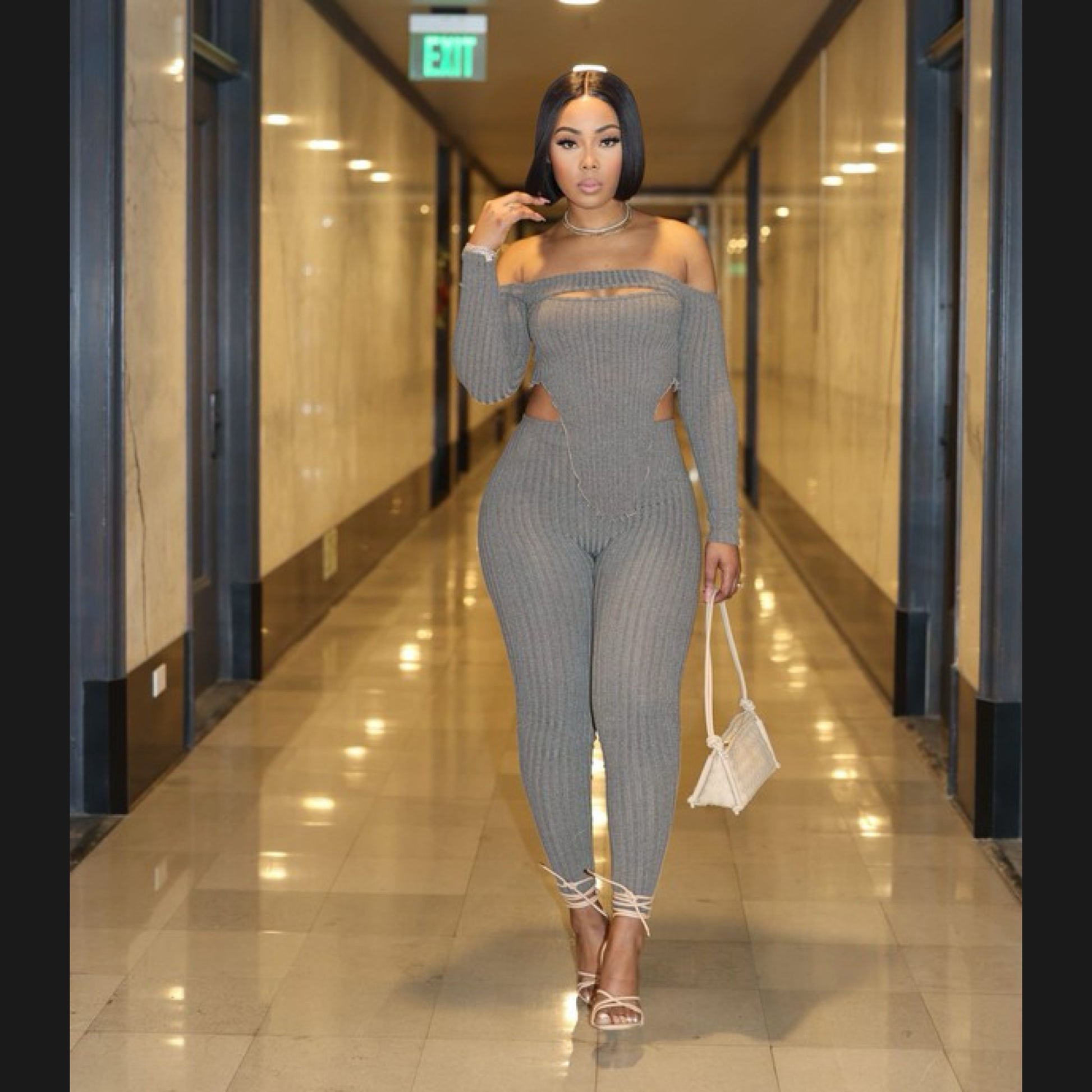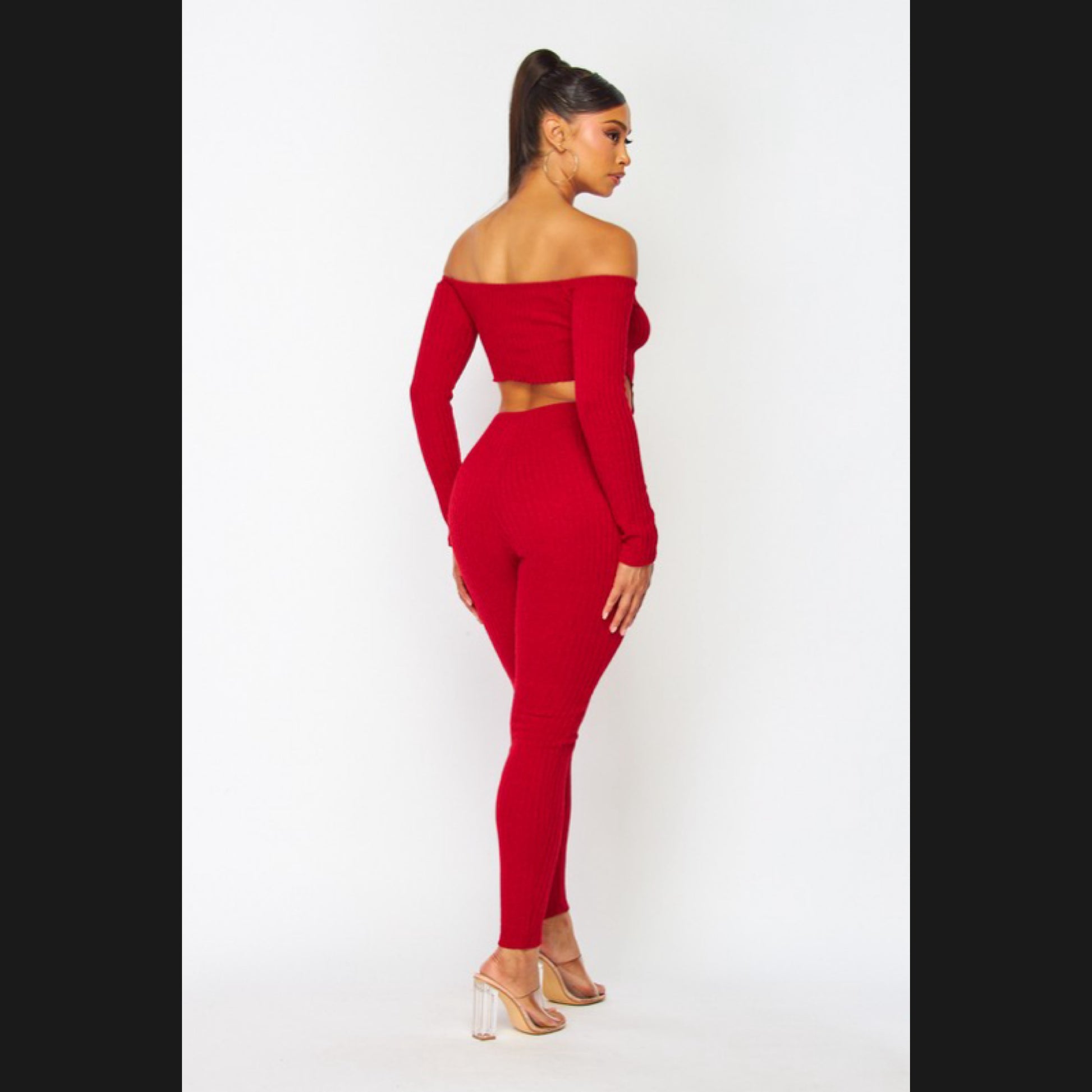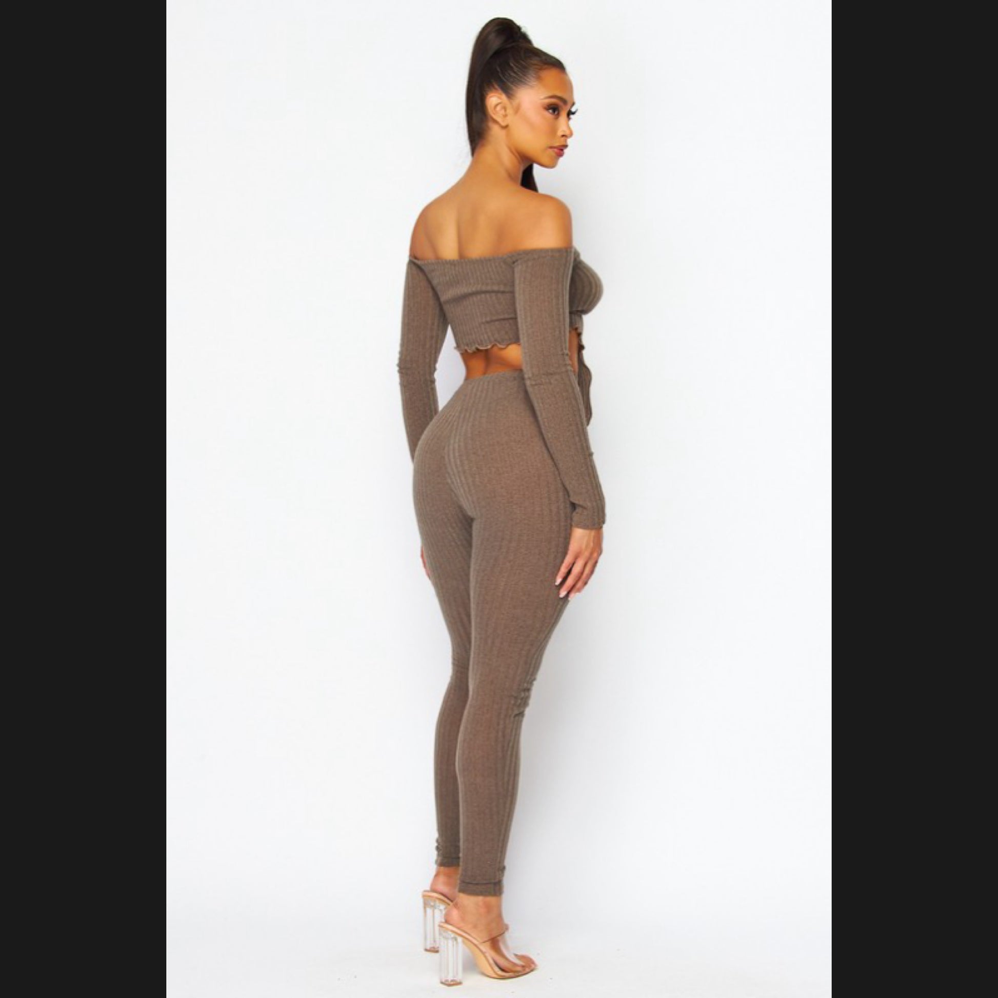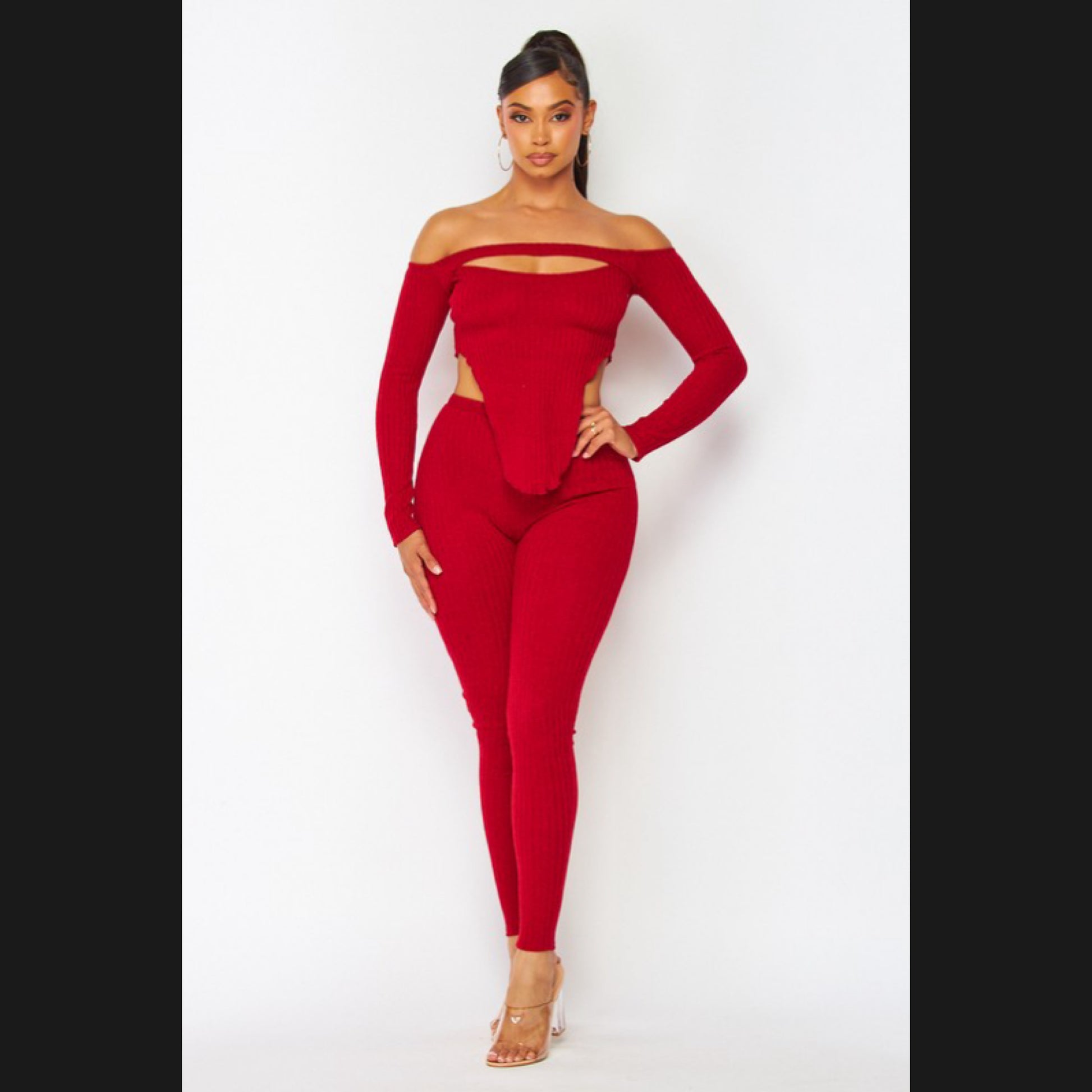 Cut out detailed off shoulder top and leggings set