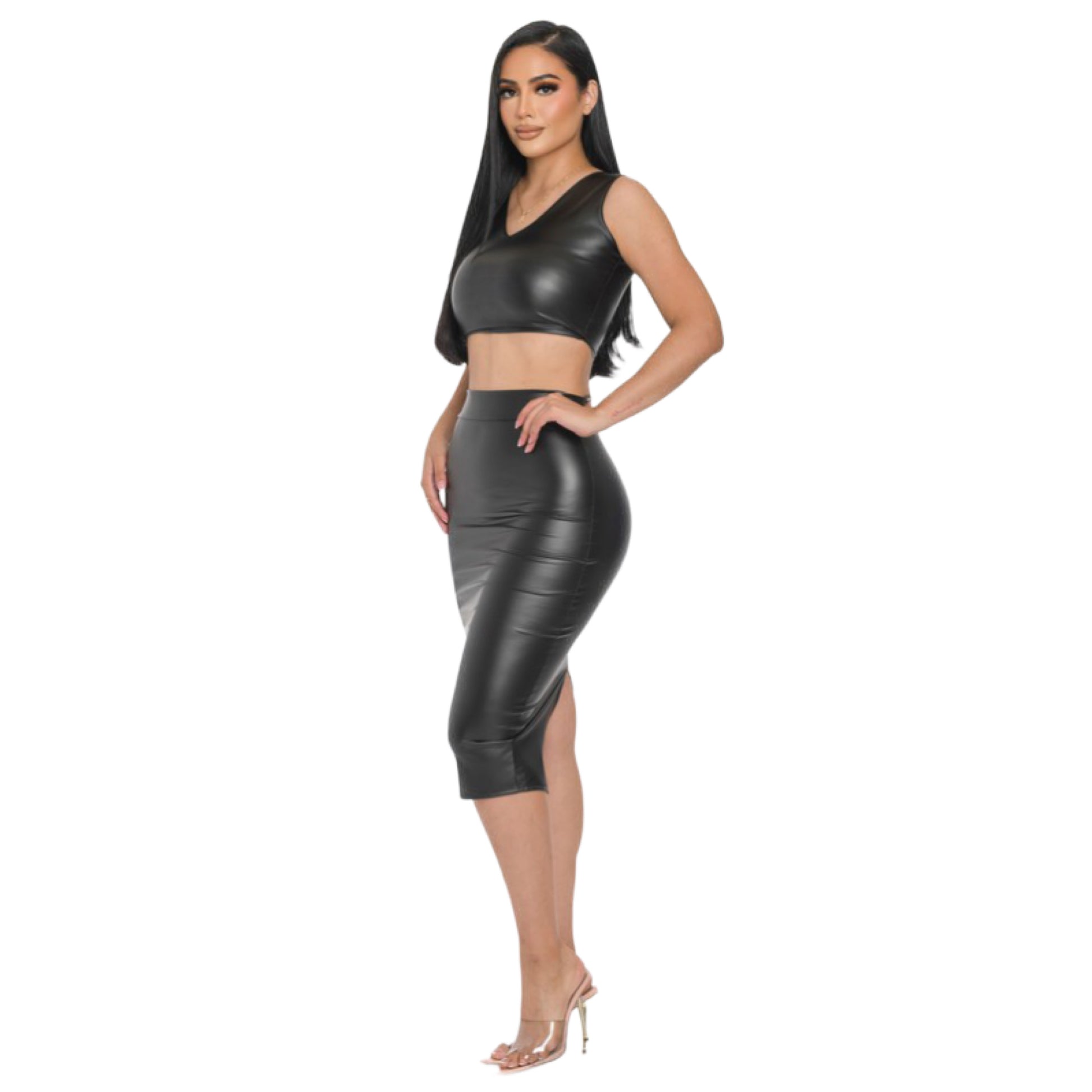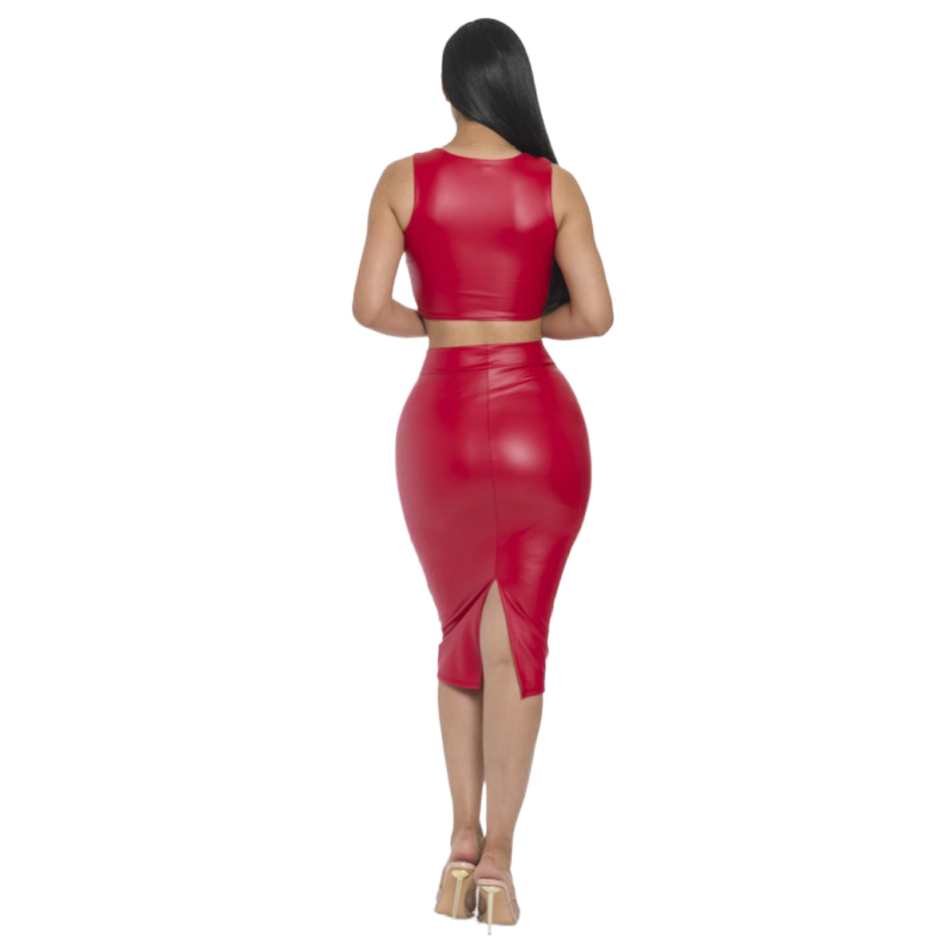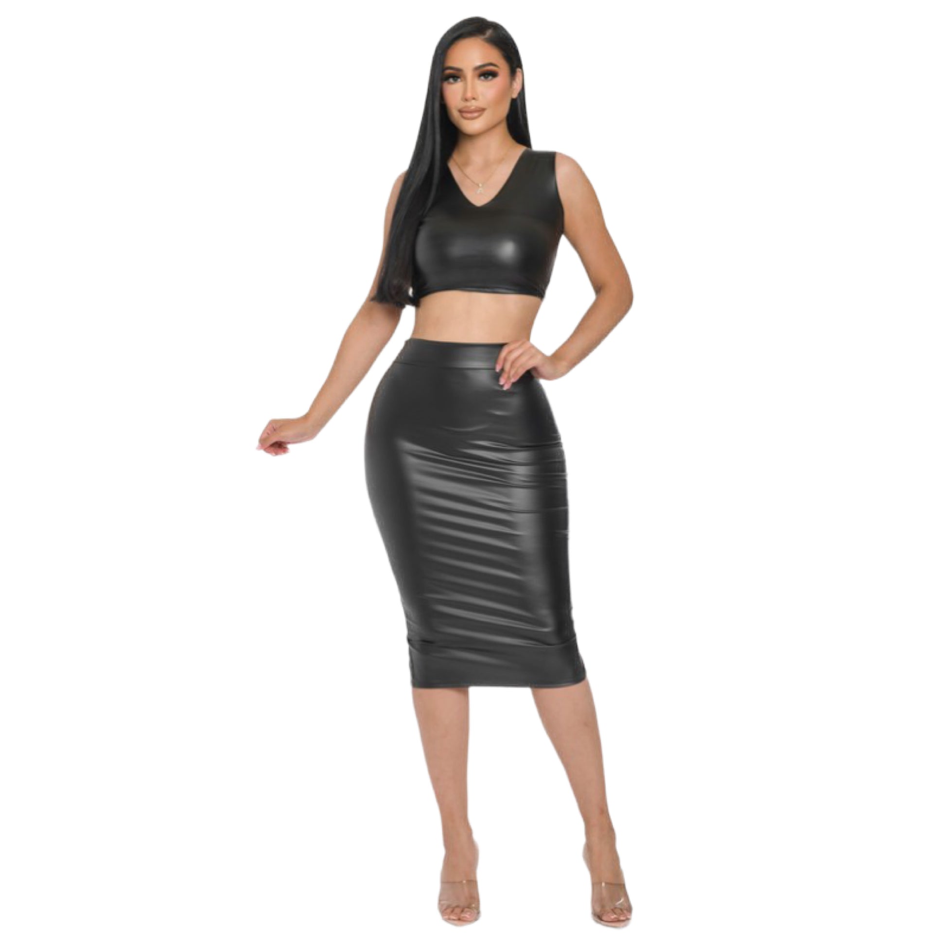 Faux leather pencil midi skirt