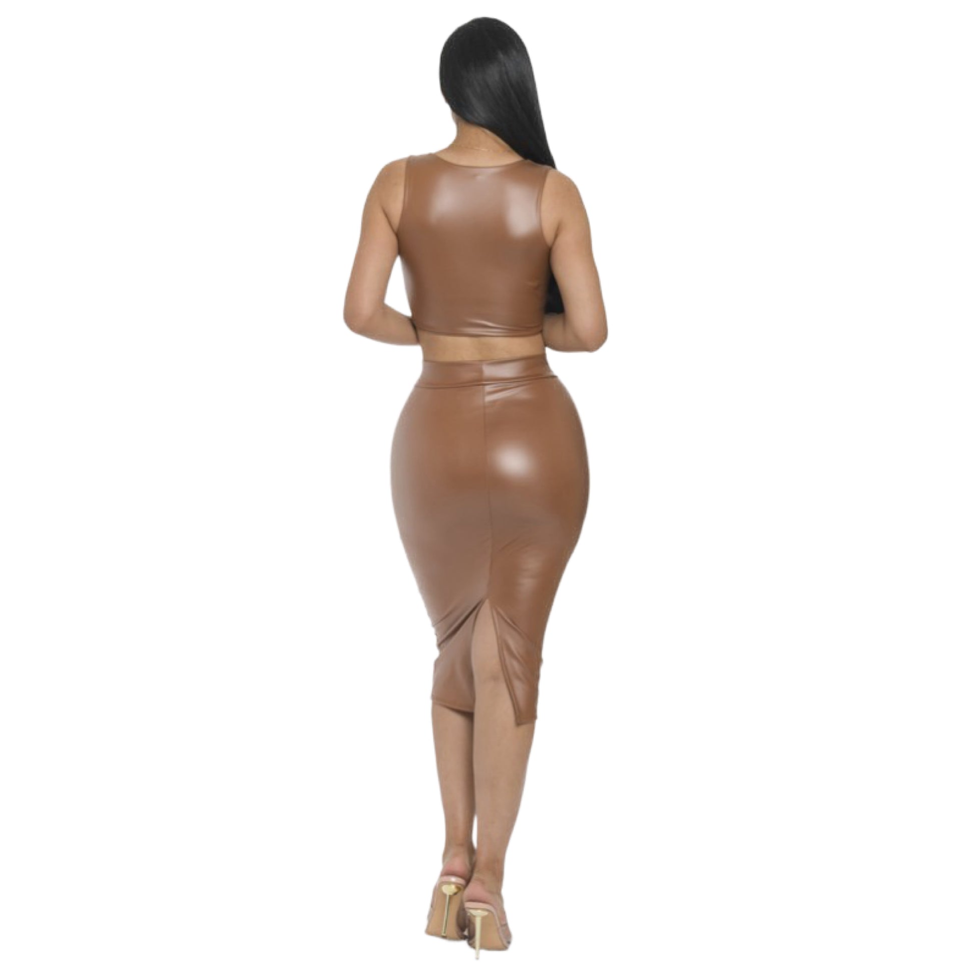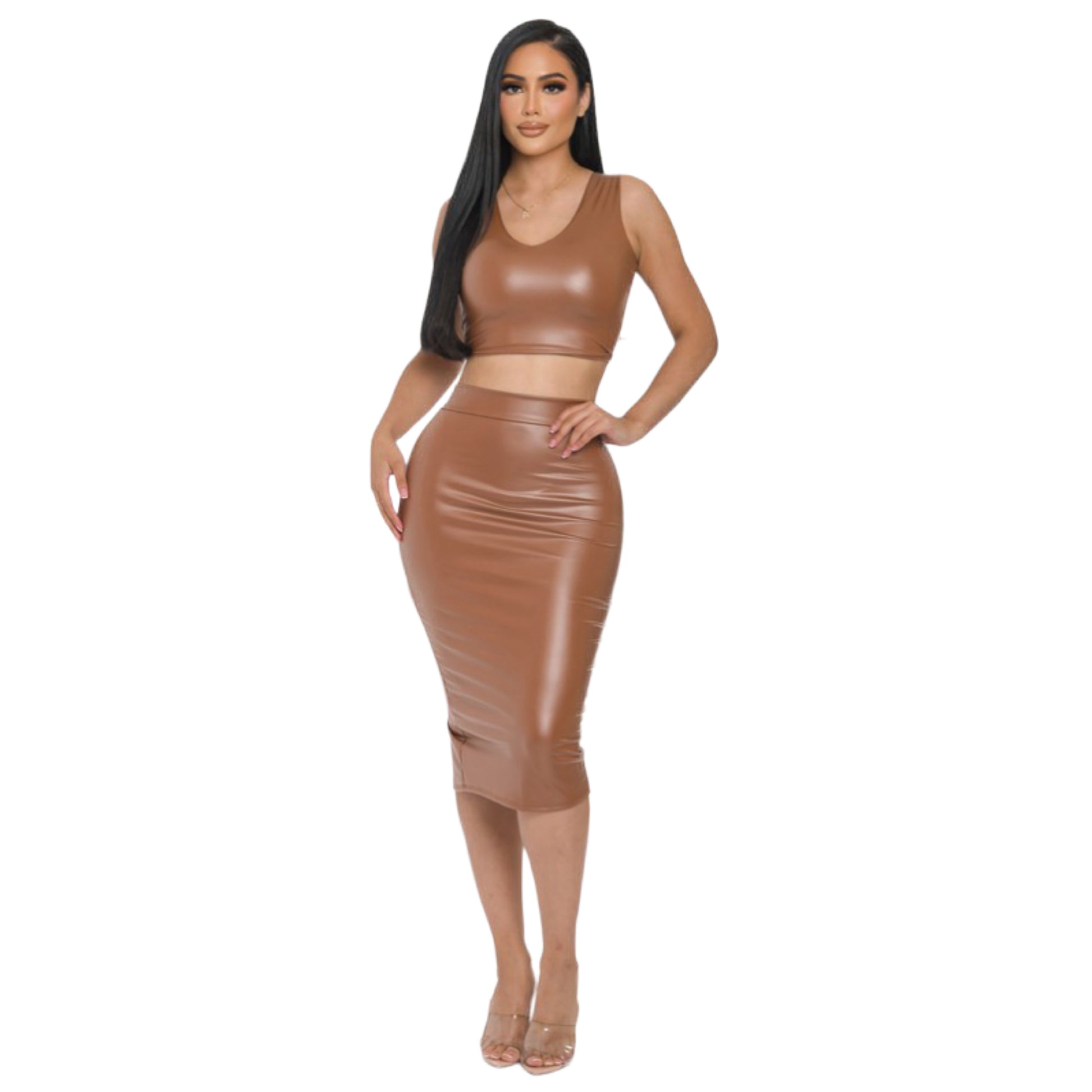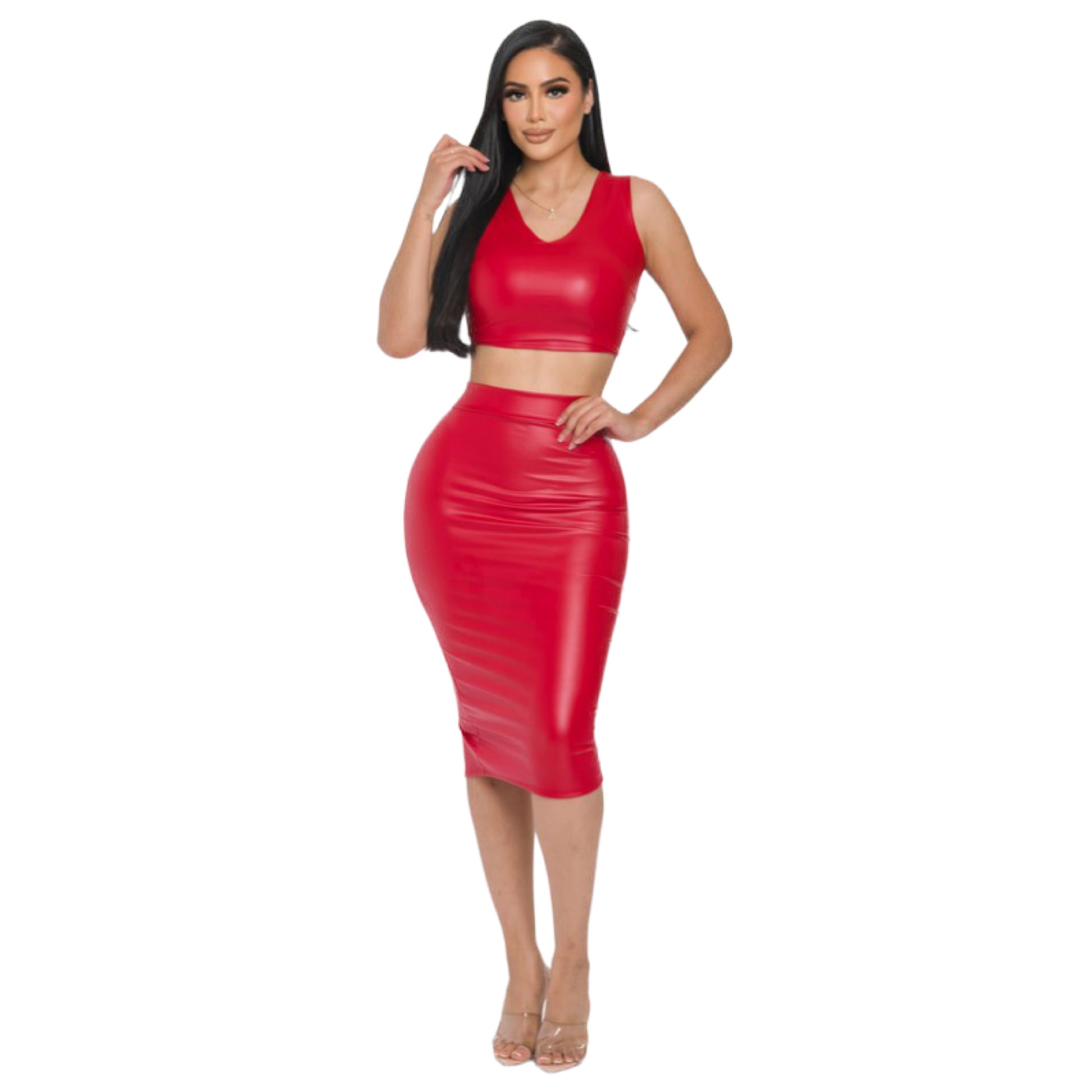 Faux leather pencil midi skirt