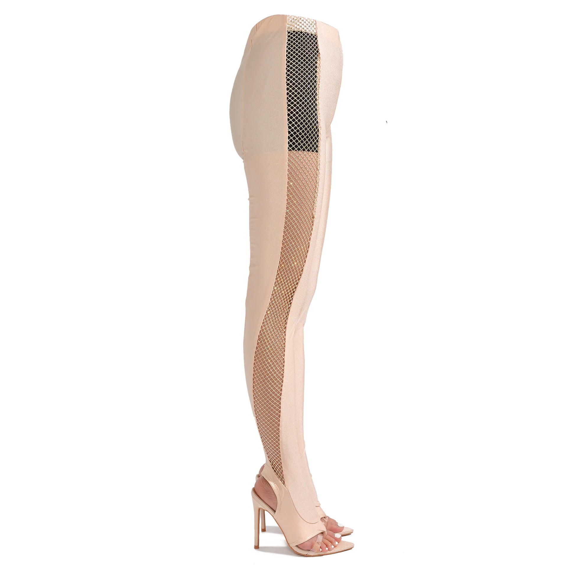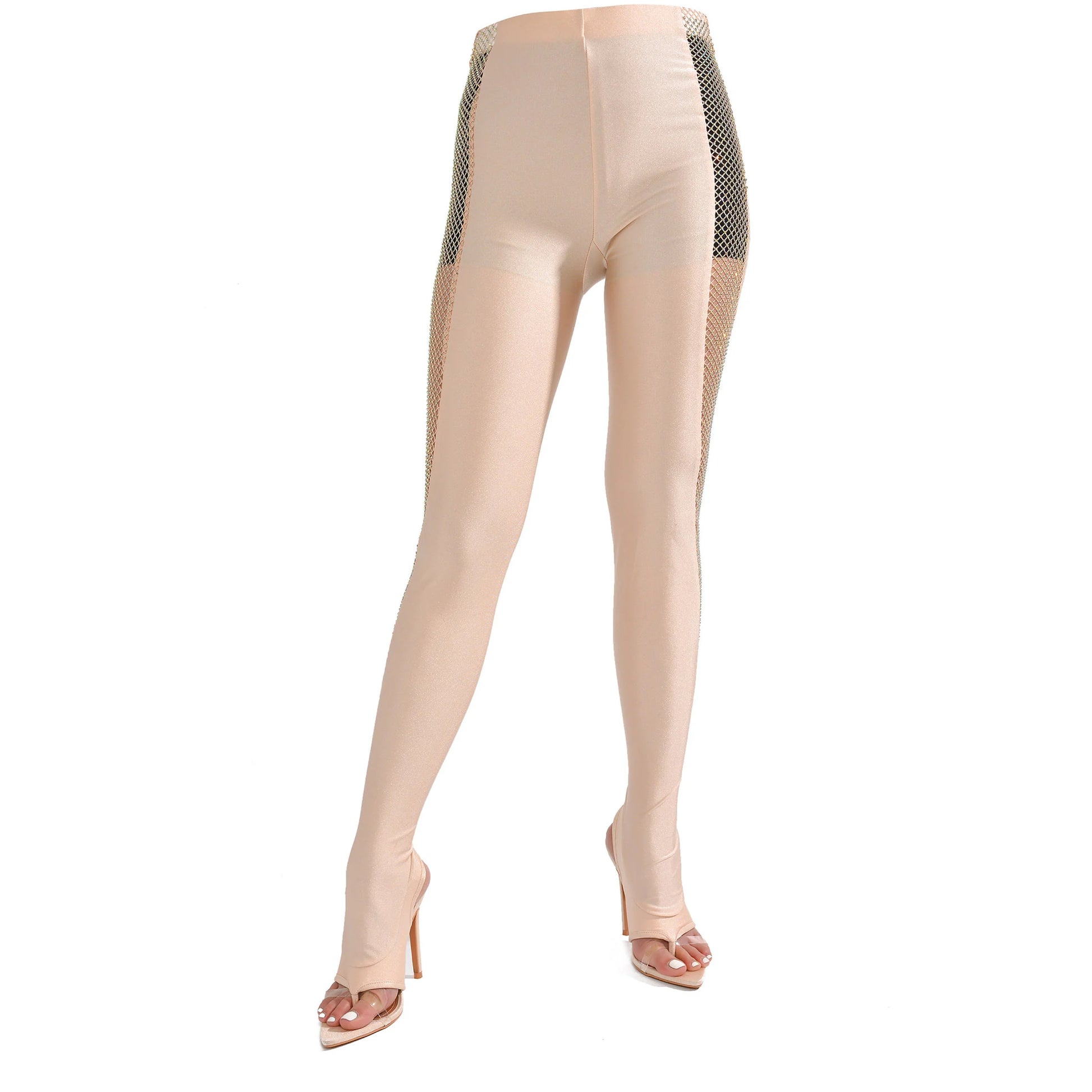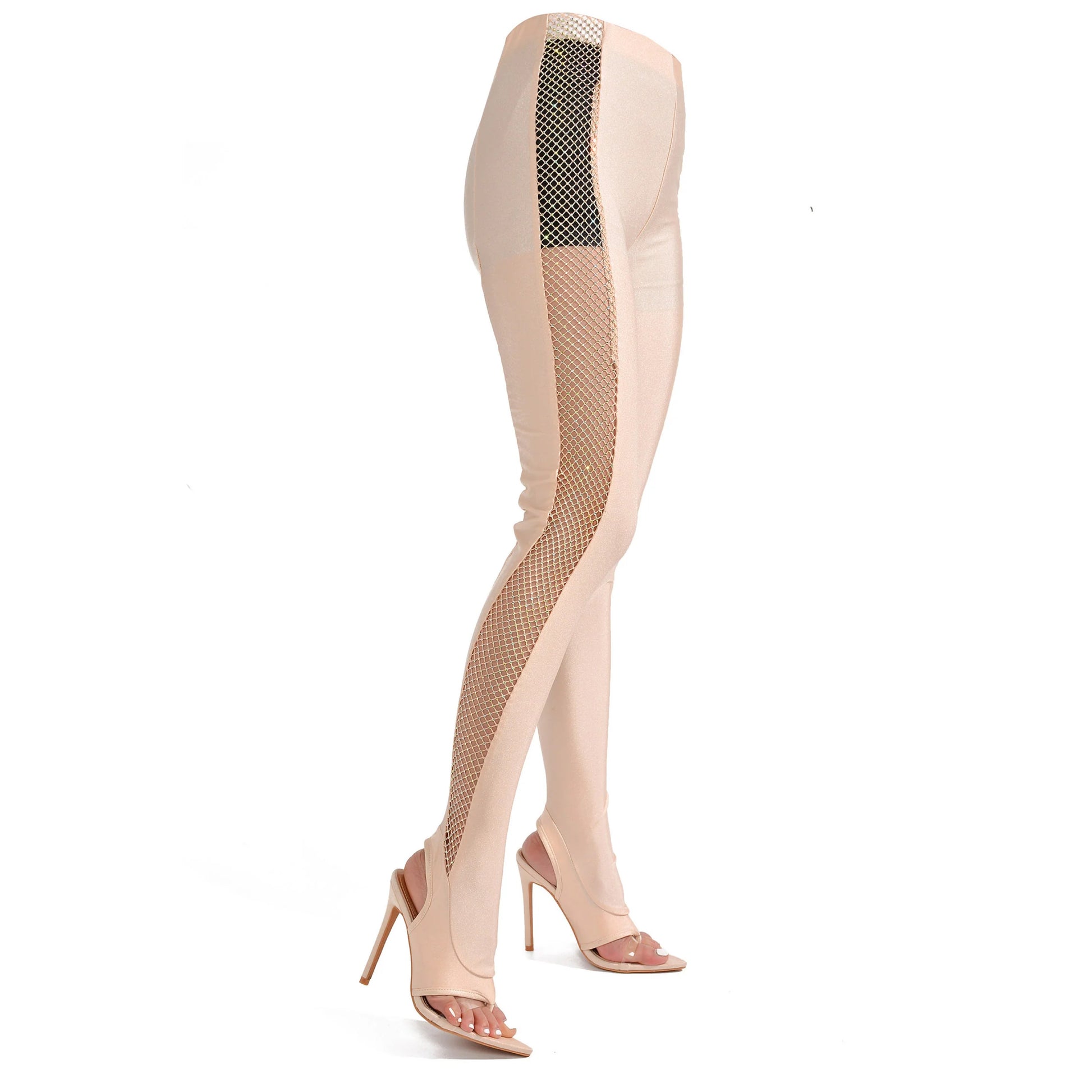 Raquel's legging boots are a showstopper! Crafted from Lycra and mesh,with a rhinestone-coated toe,these boots add a touch of glamour to any ensemble. The sleek design is perfect for day or night,and will draw attention wherever you go. Pair with a fitted black tee and blazer. Comes in nude and black