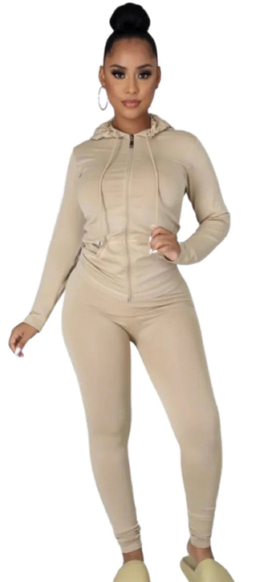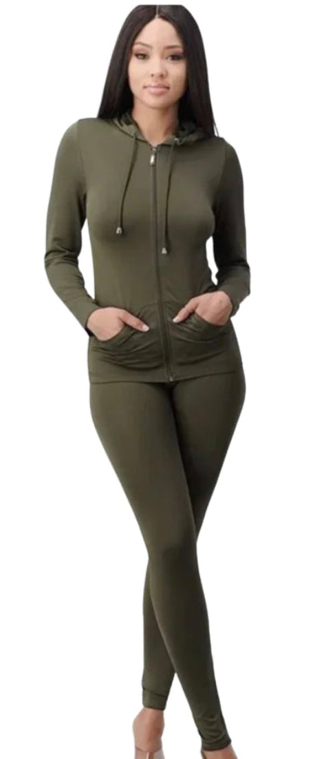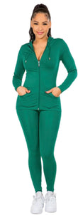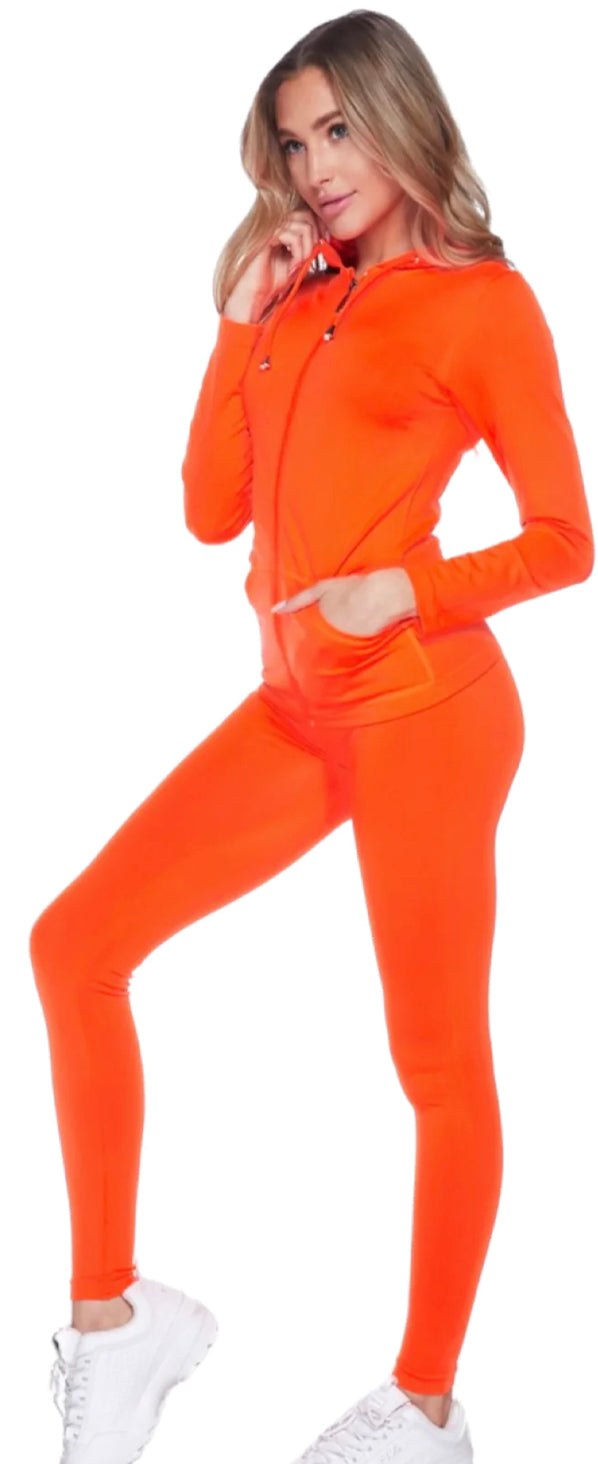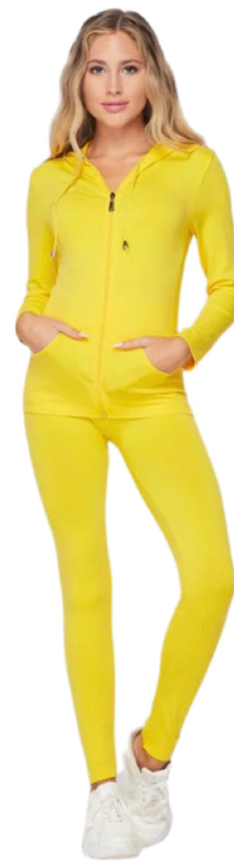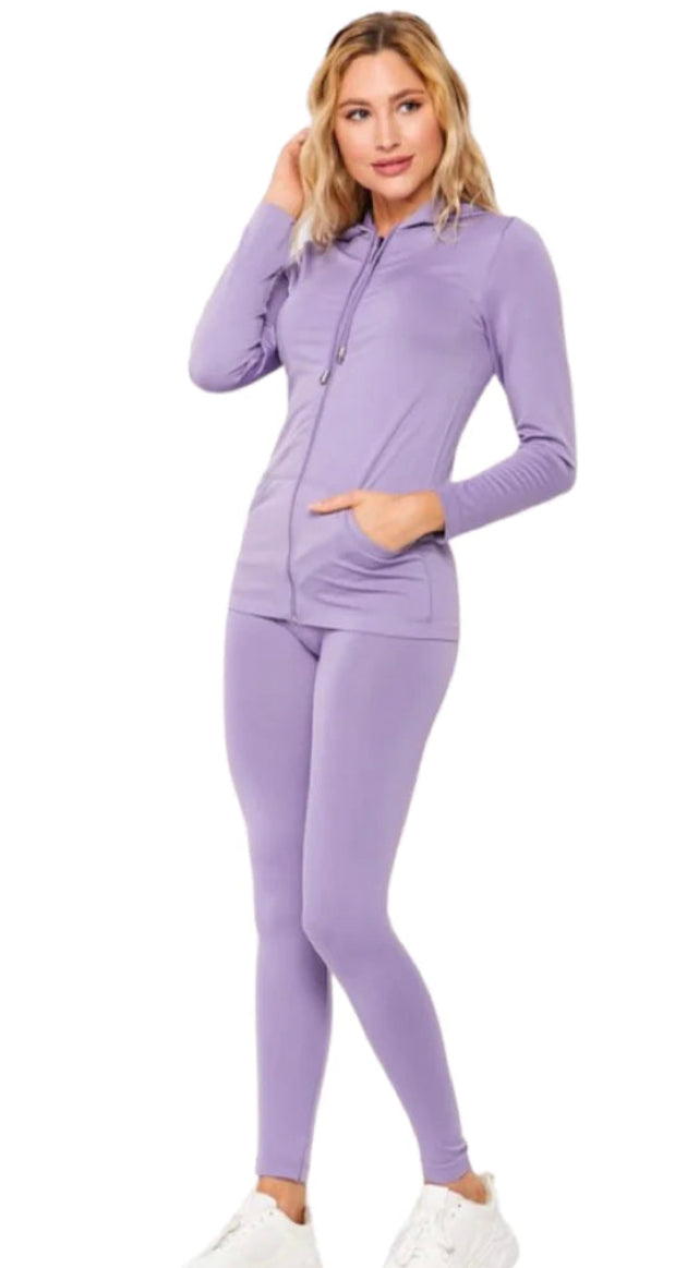 Stretchy active zip up hoodie and leggings set