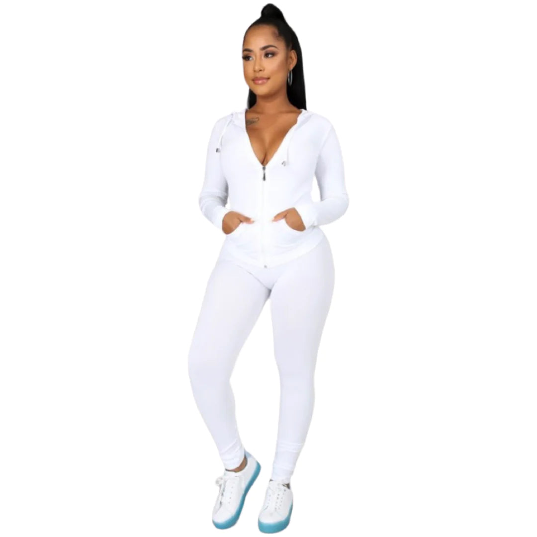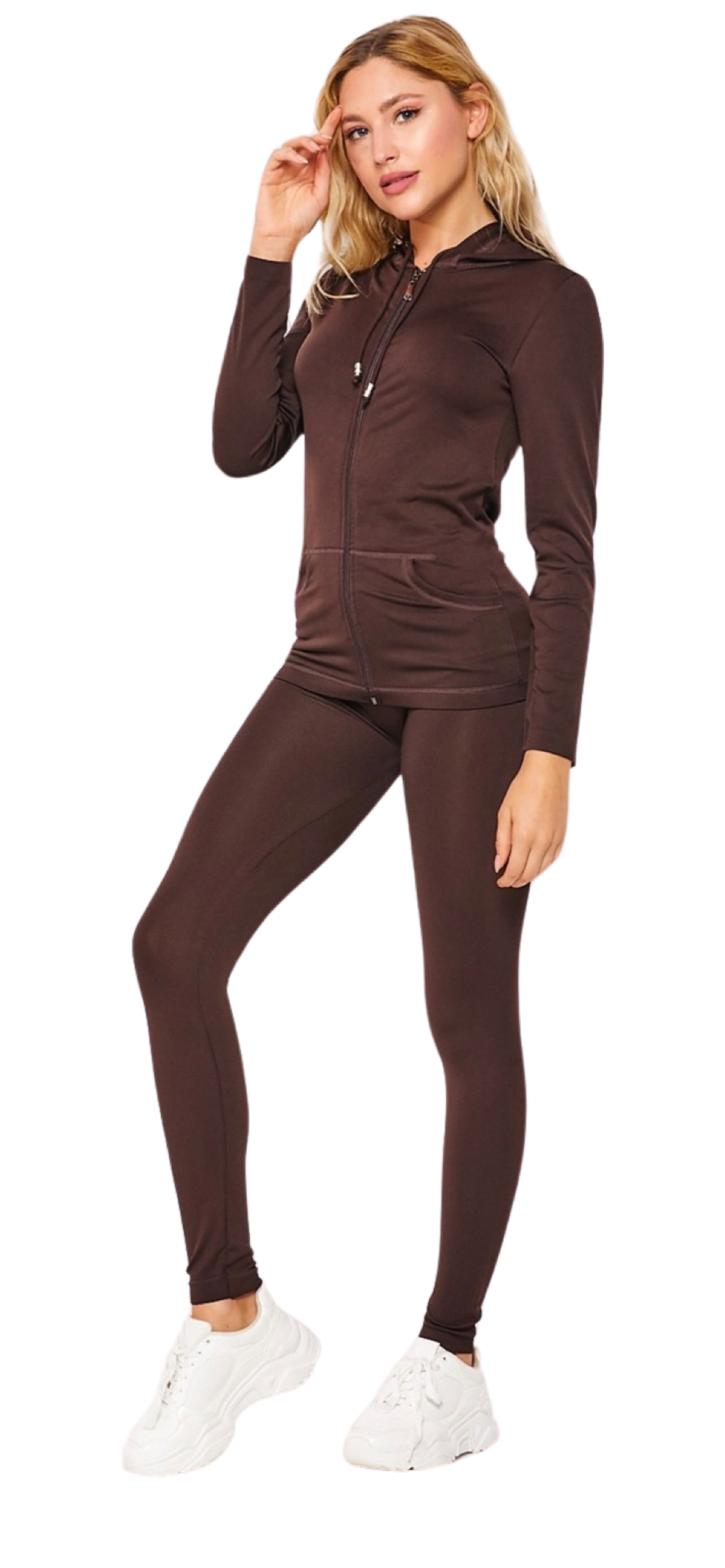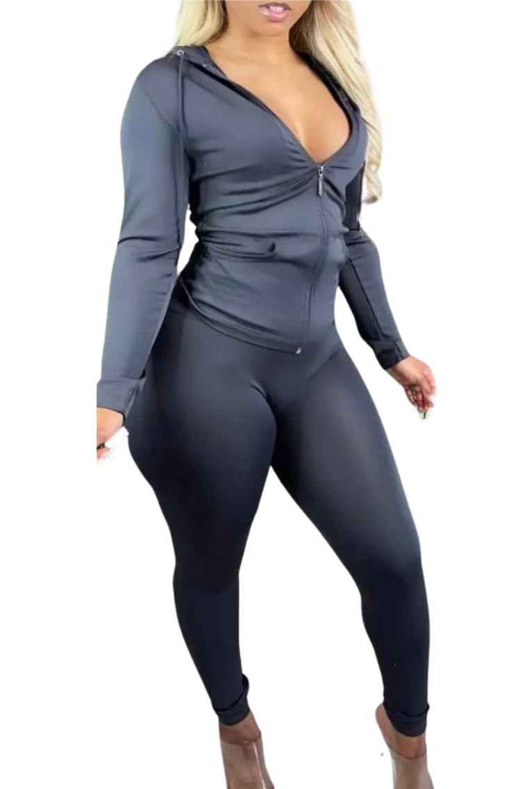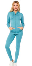 Stretchy active zip up hoodie and leggings set