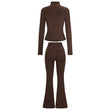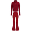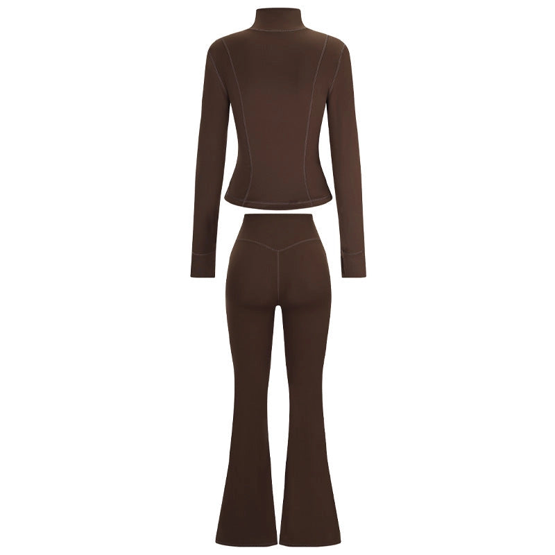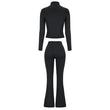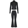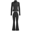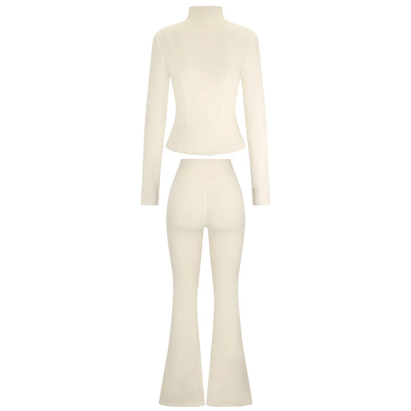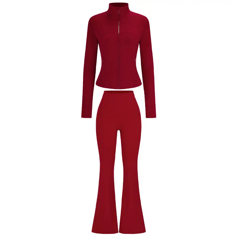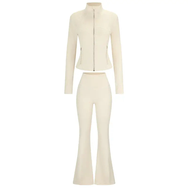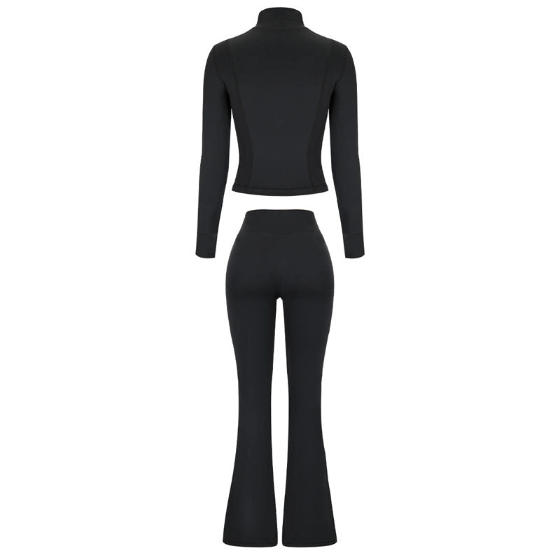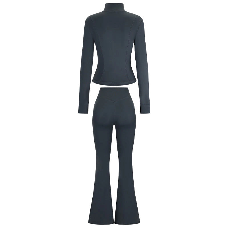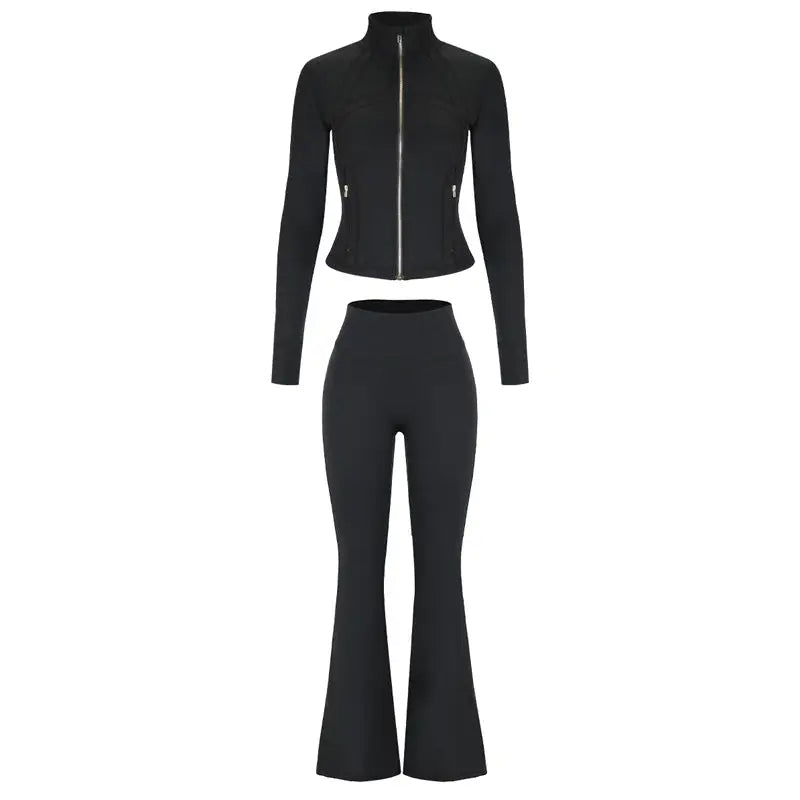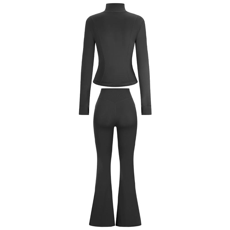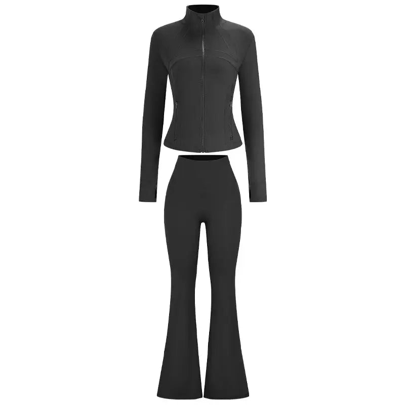 - Breathable slimming long sleeve full zipper jacket & high-waisted yoga flared leg pants