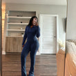 - Butt lift design on pants for a flattering silhouette and flared leg pant