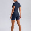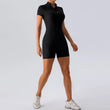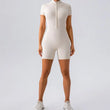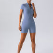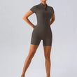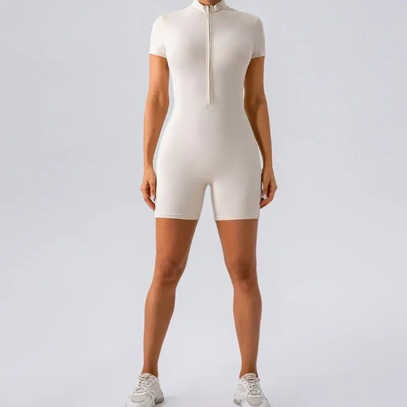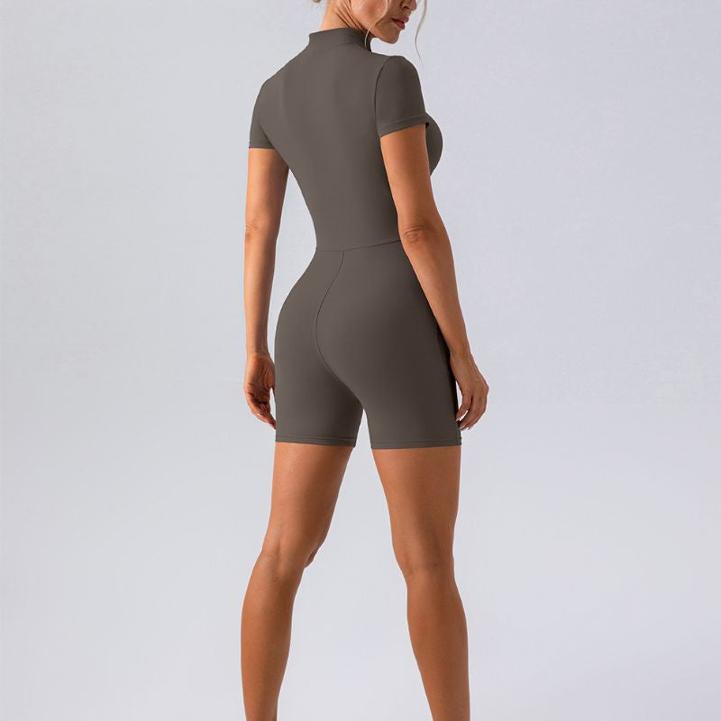 - Breathable stand-up collar half zipper nude short sleeve jumpsuits designed & uniquely fit to flatter every size