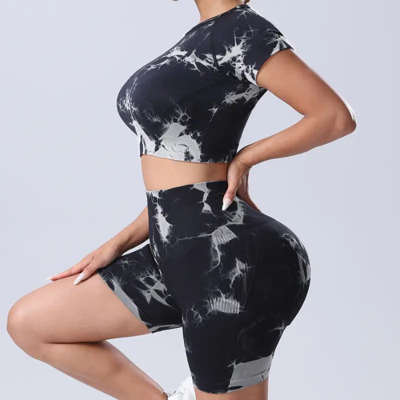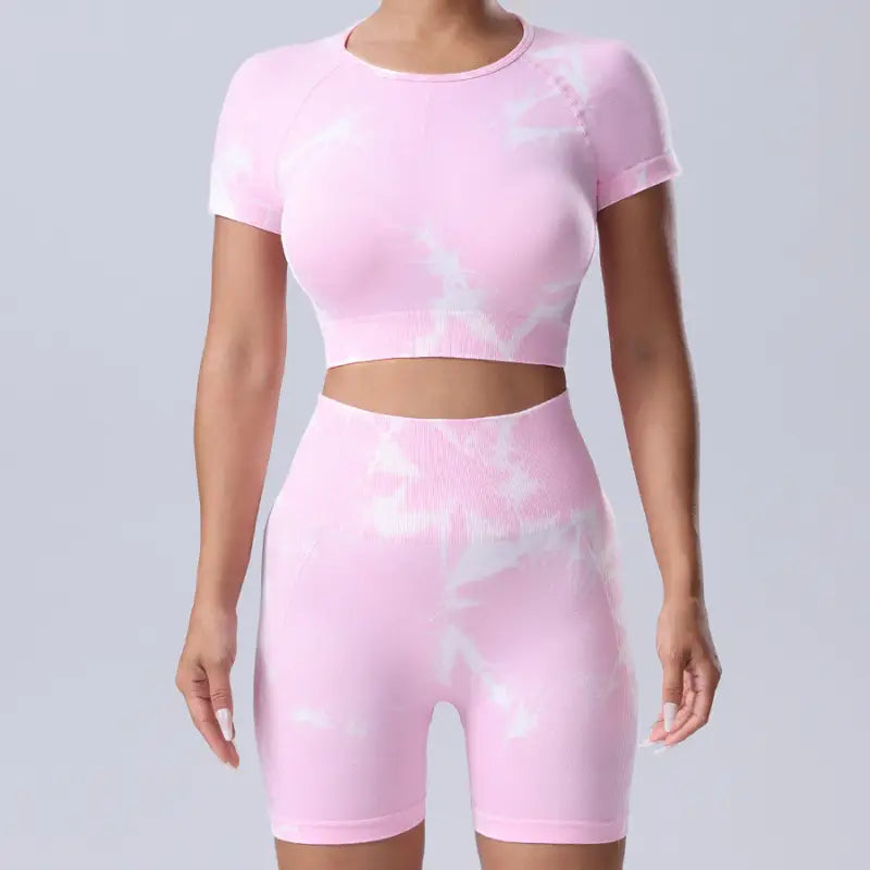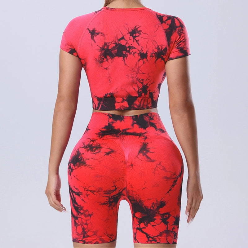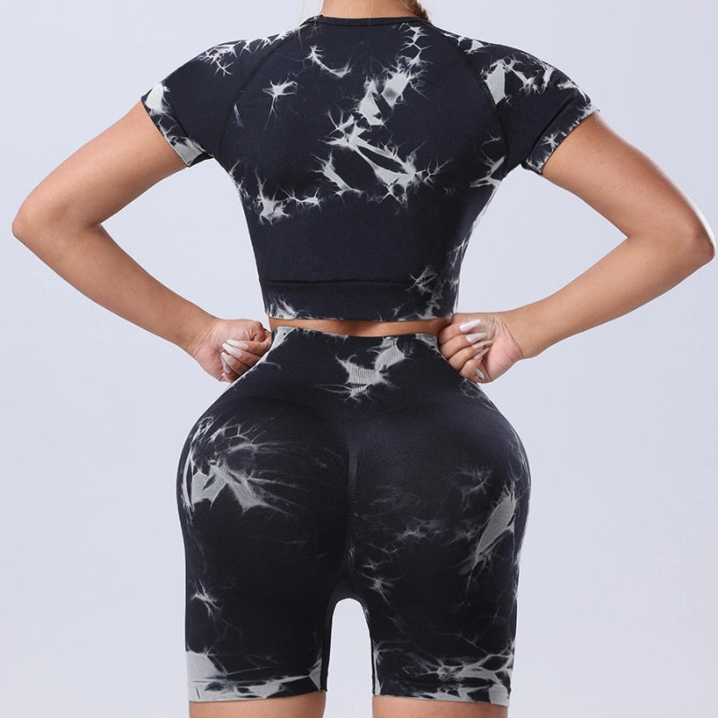 - Breathable tie-dye short sleeves and shorts two-piece suit suitable for yoga sports