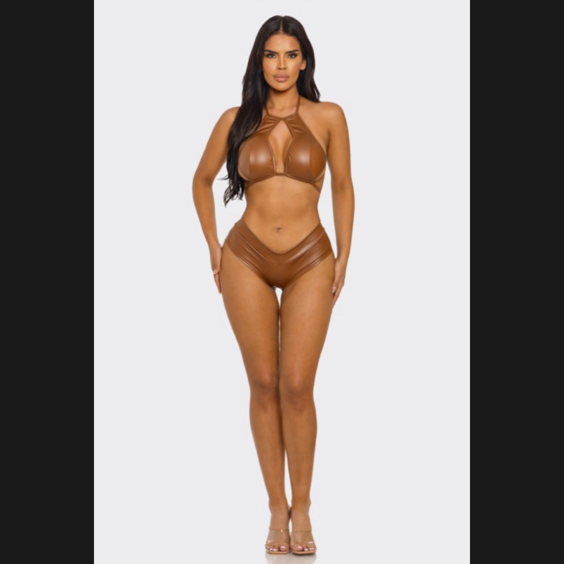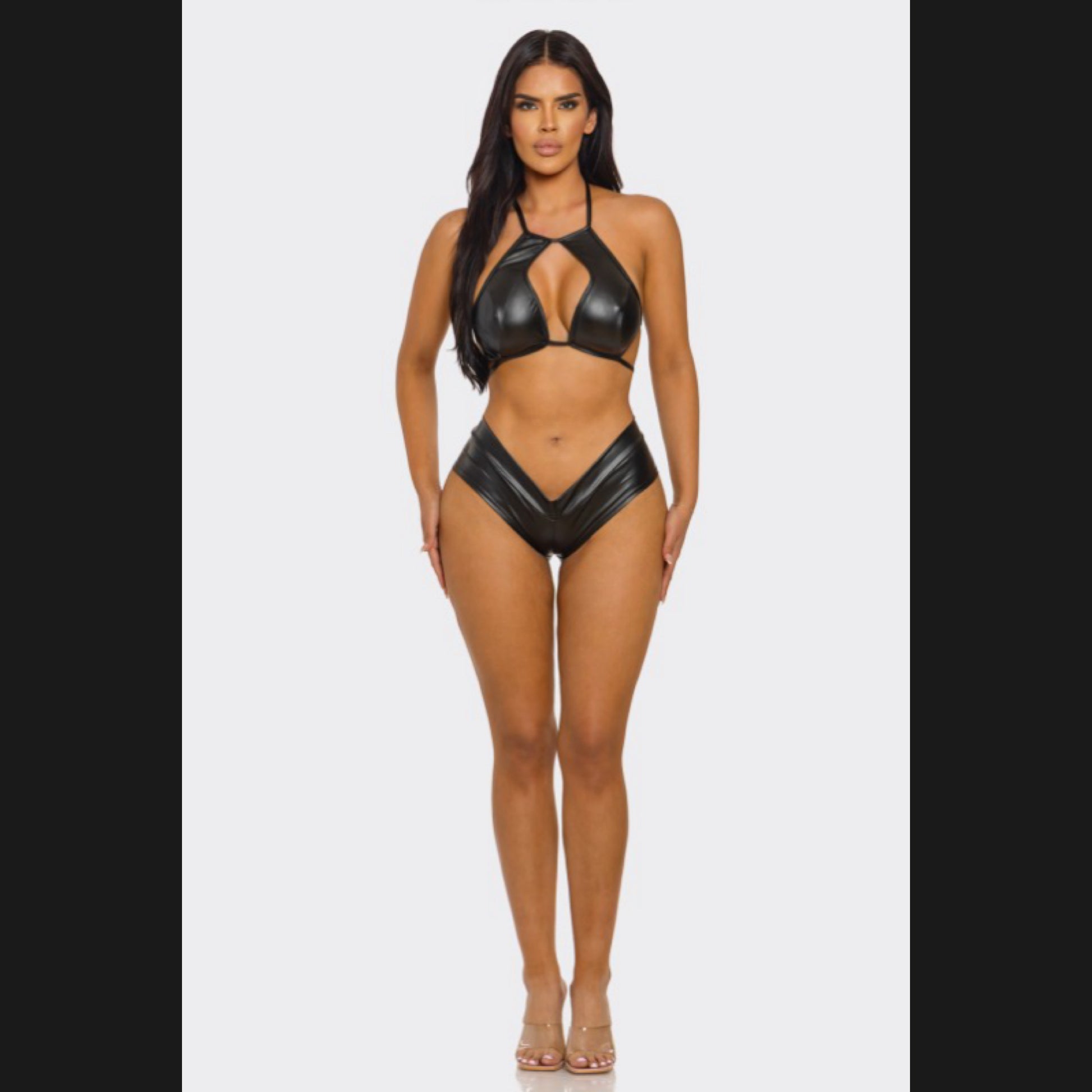 Crop top and faux leather shorts set