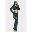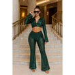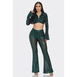 Flare long sleeves sequined cropped blouse with a collar and silver rhinestone buttons