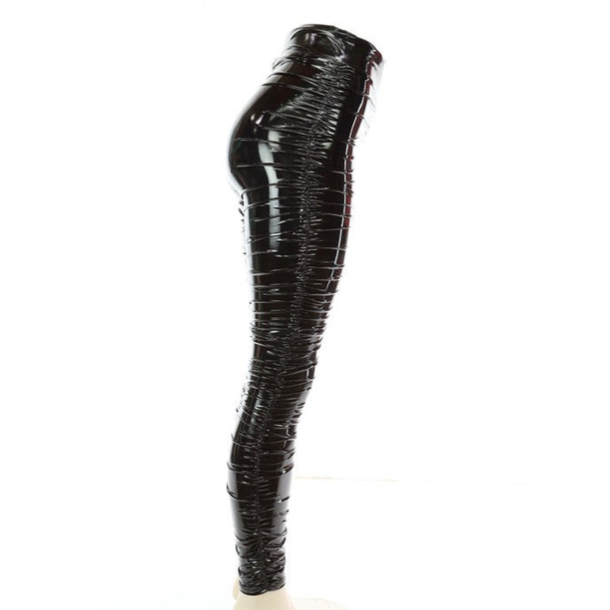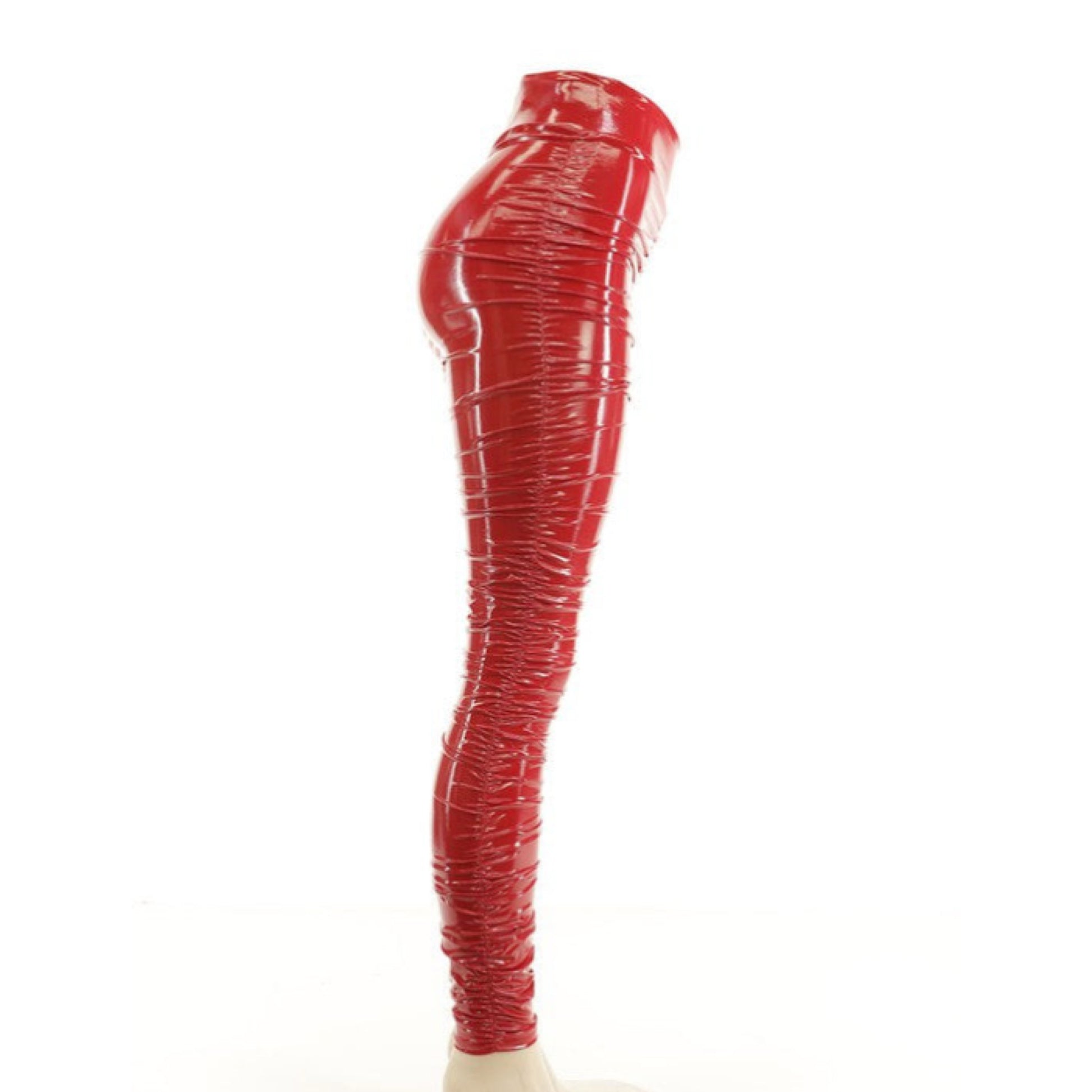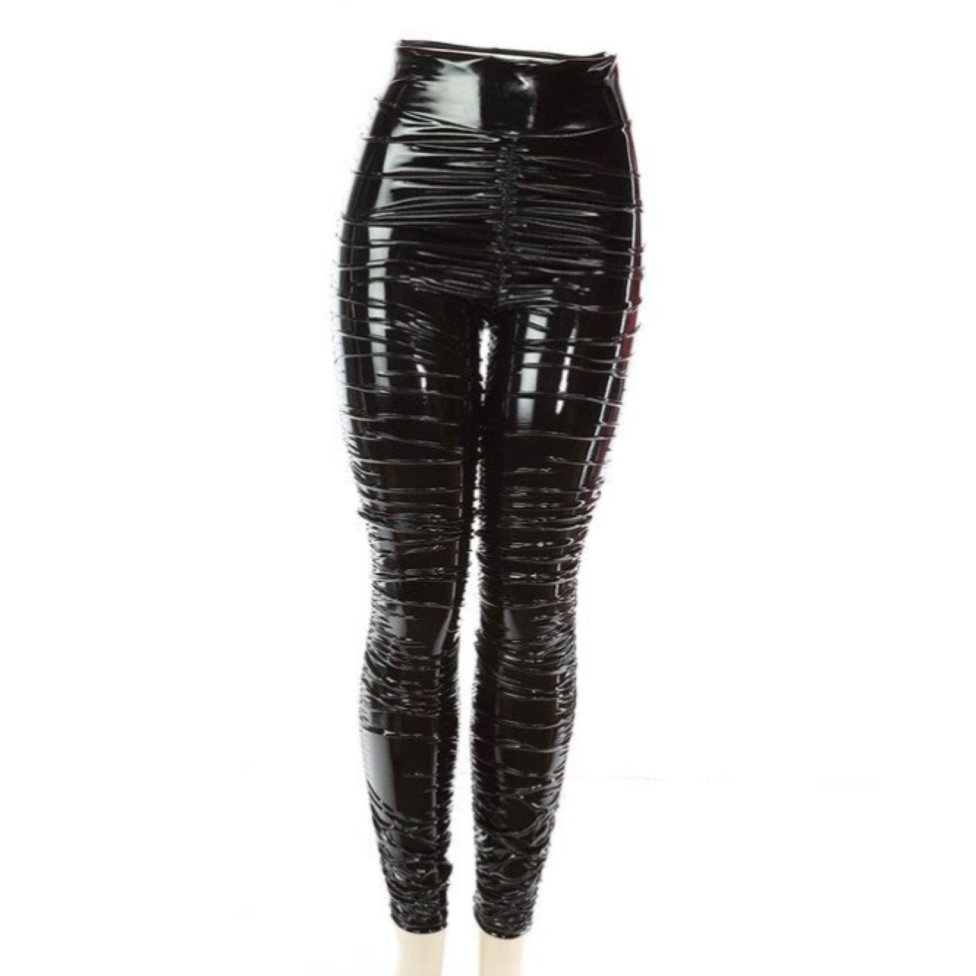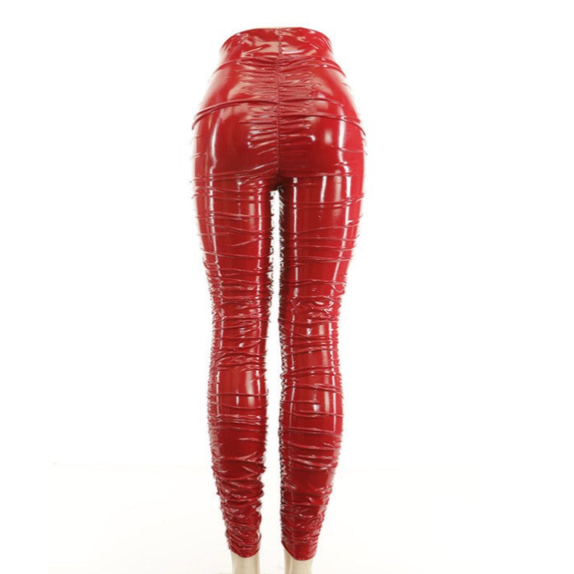 Ruched shiny faux leather pants