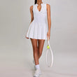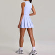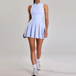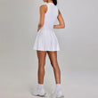 - Snug-fit solid color half zipper pleated tennis dress