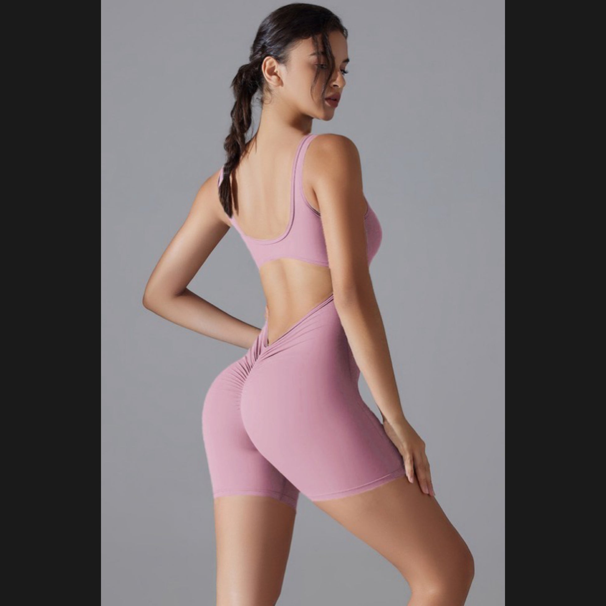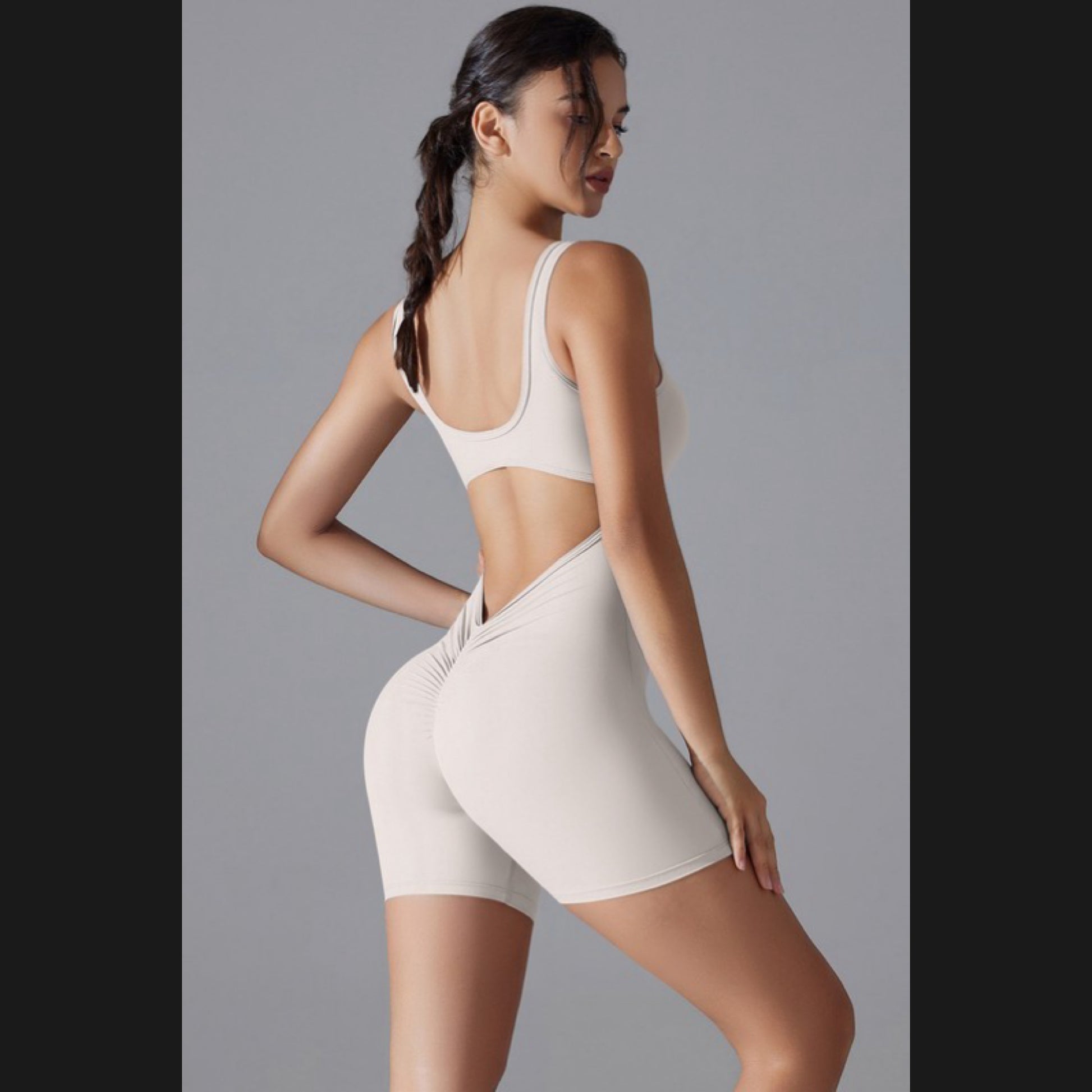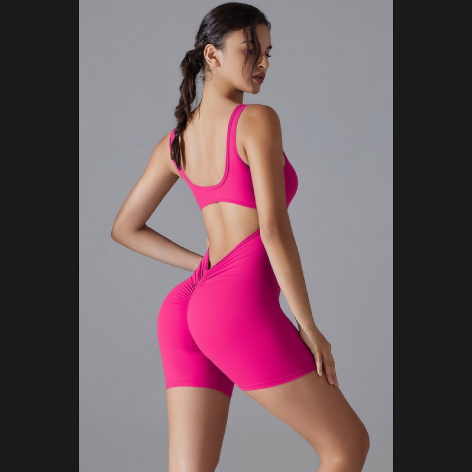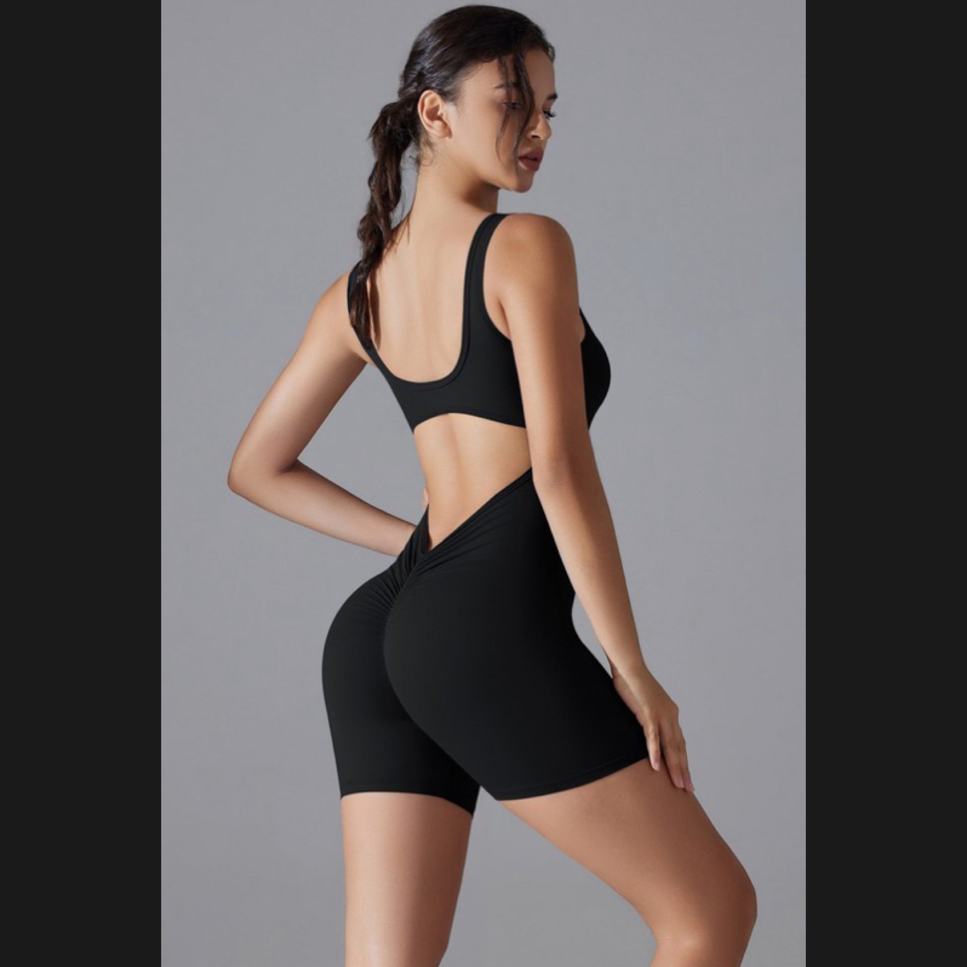 Deep open back with scrunch butt design