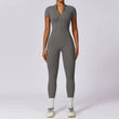 - Ultra-soft high resilience snug fit stand collar half zipper short sleeved nude yoga jumpsuits